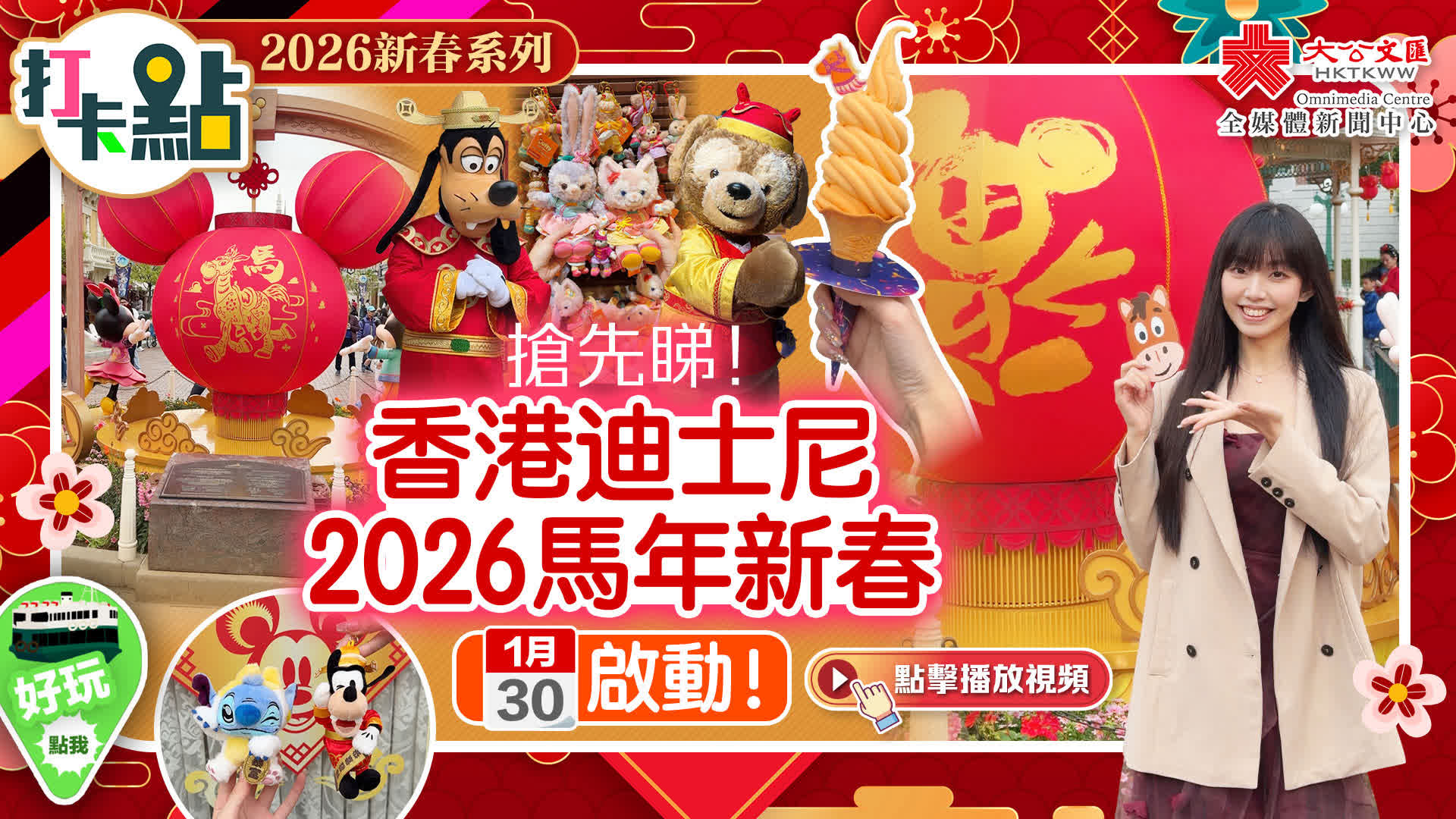 與迪士尼朋友歡聚拜年 年初一入園獲贈馬年利是