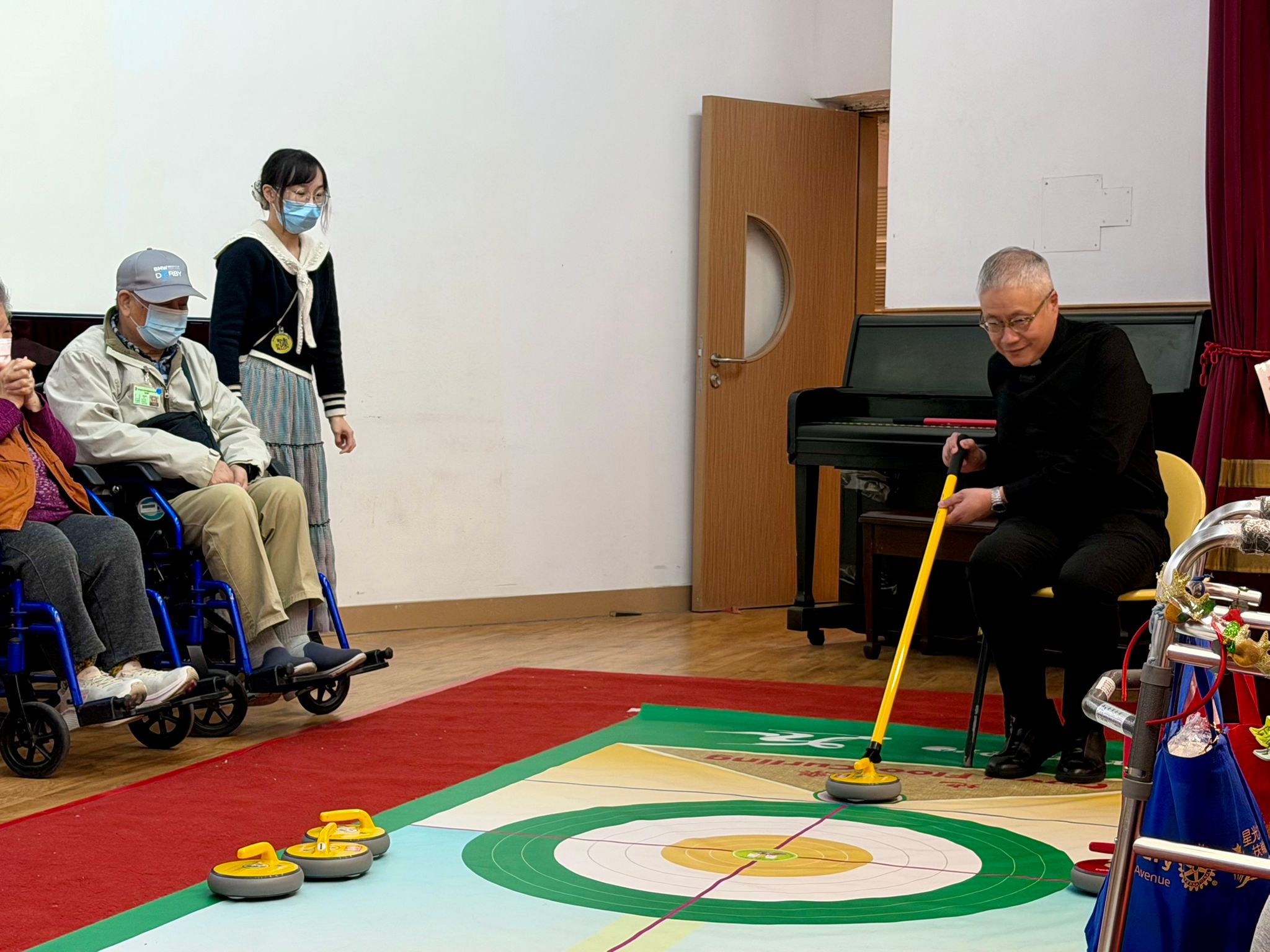 正在安老院協助院友折疊衣服的81歲李伯伯,平日都會在護老院做義工,旨在「過吓日神」。管浩鳴上前問候,亦問及他對財政預算案有何建議,譬如如何看待政府可能削減社福資助。李伯伯指,希望政府不要削減社福開支,同時,他亦希望政府可以多做一些,提議增加樂齡科技的相關撥款,以便幫助其他院友。