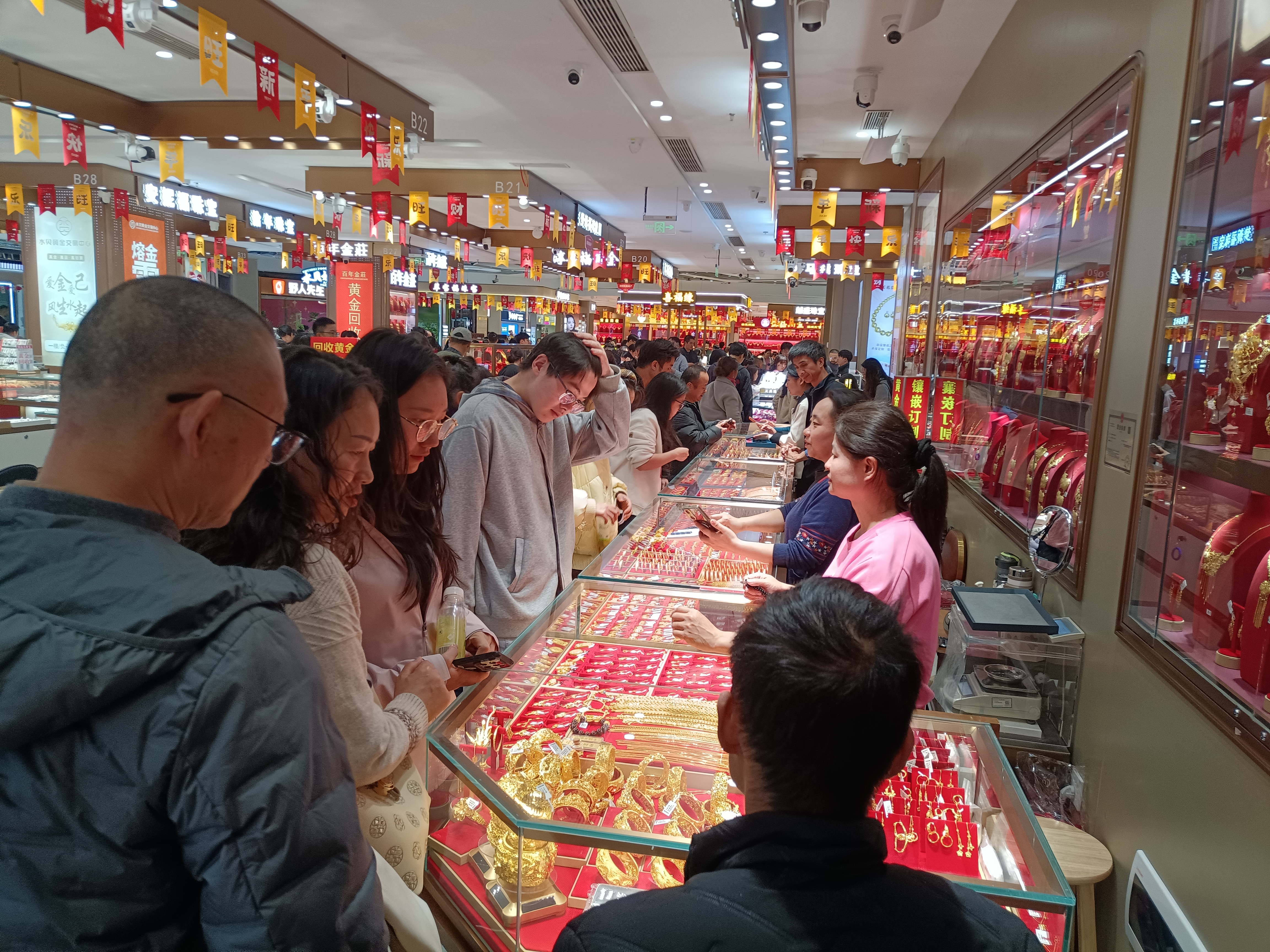 記者今日走訪了深圳水貝黃金交易中心時看到,由於金價下跌,加上春節即將來臨,內地迎來婚慶高峰,該市場像菜市場一樣,大量年輕情侶、母女等紛紛前來購買手鐲、項鏈和吊墜等。當天黃金價格為1262元(人民幣,下同)一克,較周五便宜60元一克,購買50克黃金,可以節省3000元。該市場商家鼎禎黃金負責人方先生表示,年底婚慶需求高峰來臨,今天他銷售了黃金飾品有300克。