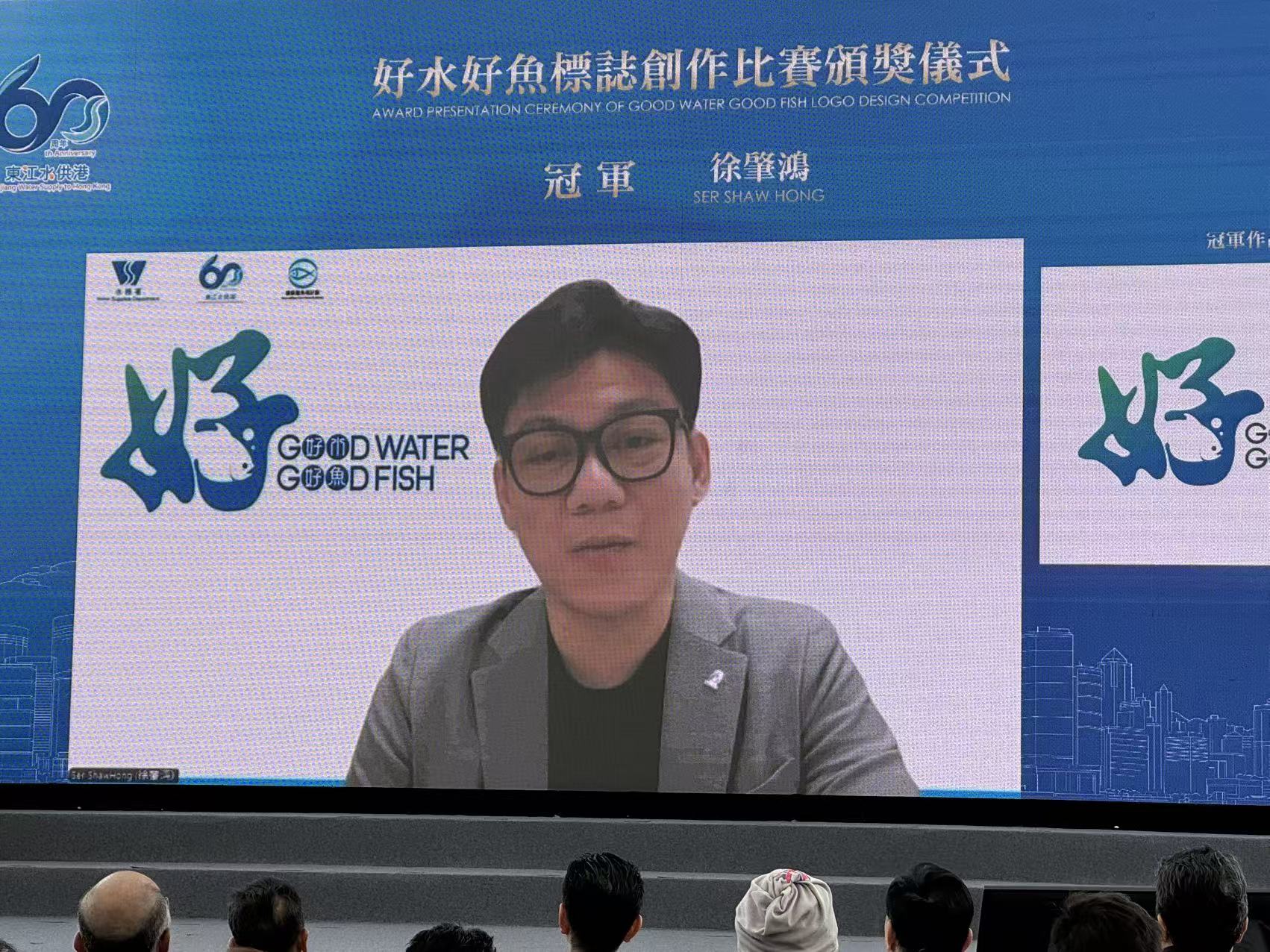 此外,儲存東江水的荃灣淡水湖於2024年註冊為優質養魚場,並獲頒有機水產養殖認證,水務署則將部分魚產品贈予非牟利機構,分享來自東江水的滋養與溫暖。由此,水務署主辦「好水好魚標誌創作比賽」,今日亦為得獎者頒獎,該比賽最終由徐肇鴻獲得冠軍,其作品以「好」字為主題,融入了水滴和魚的形象。