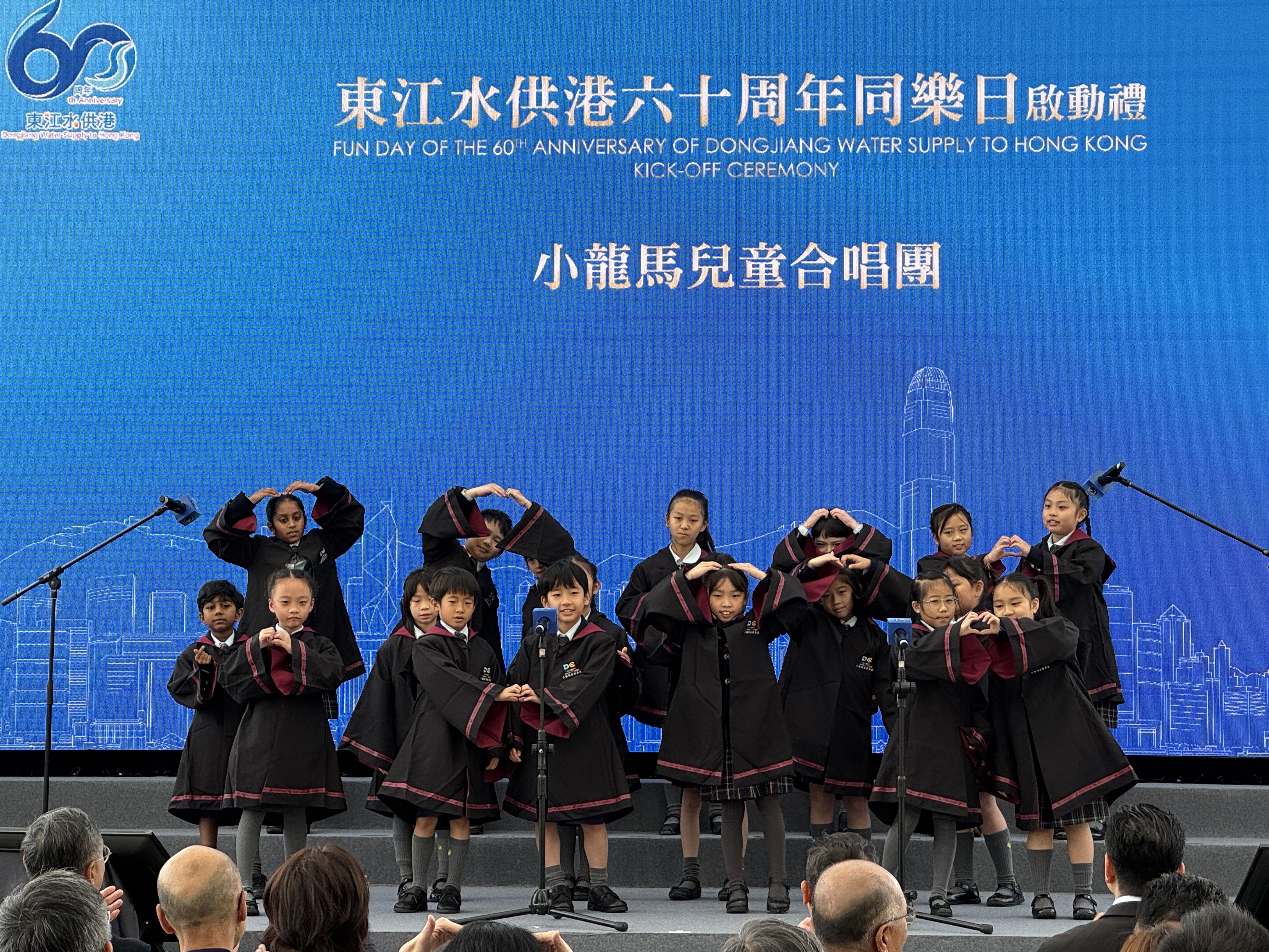 「東江水供港60周年同樂日」啟動禮開場由小龍馬兒童合唱團帶來兩首歌曲,傳唱水與幸福。