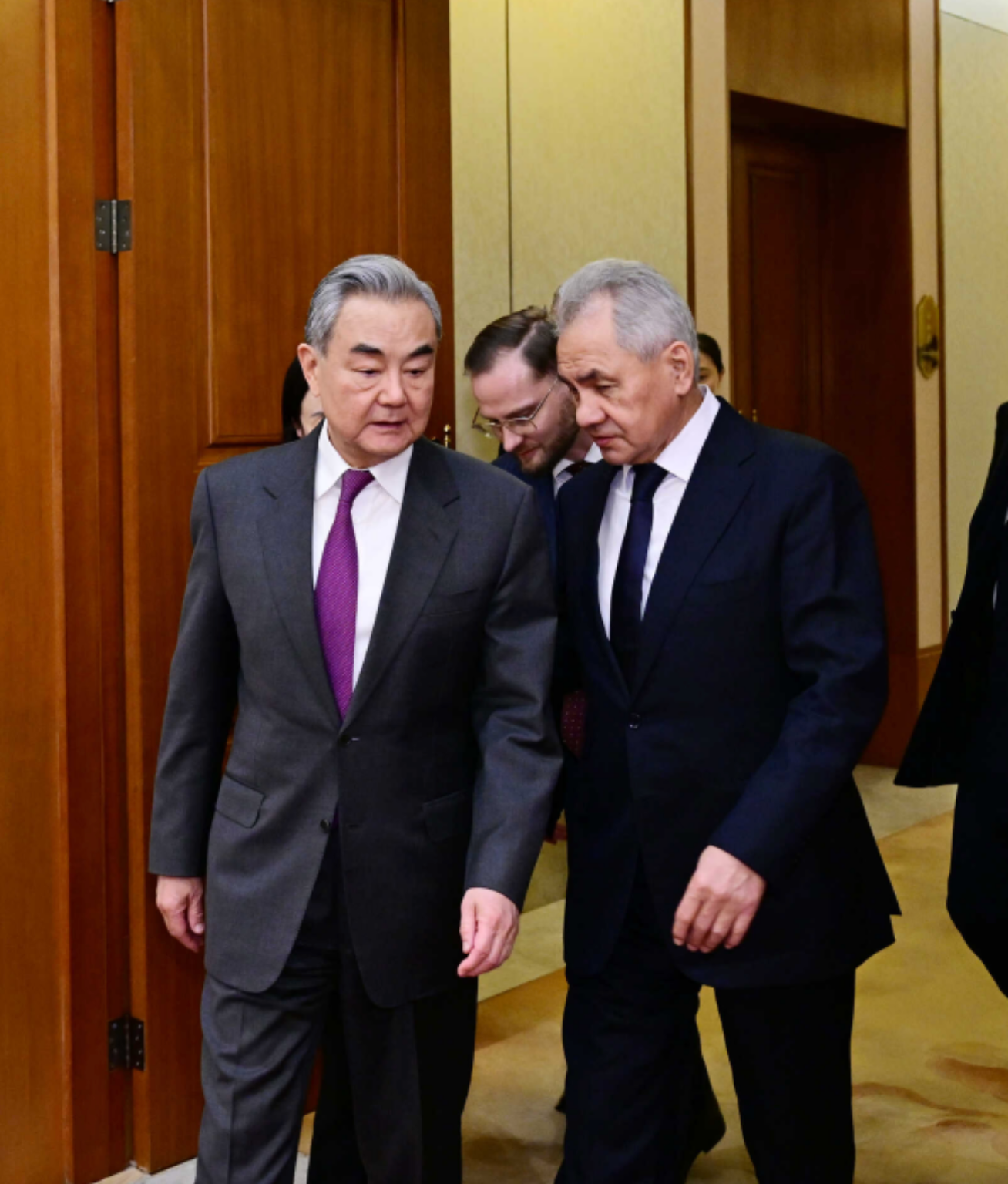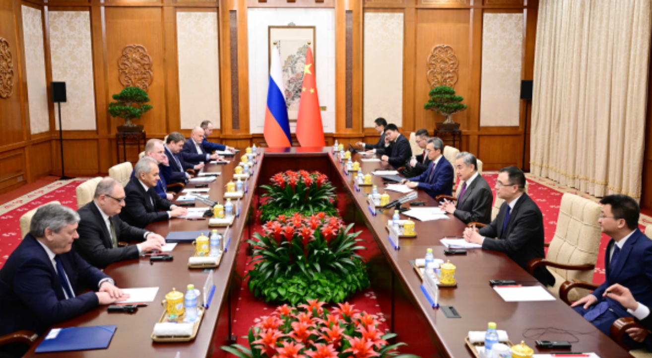 王毅歡迎紹伊古受俄羅斯總統普京委派來華戰略溝通,表示當前世界更加變亂交織,二戰後國際秩序和國際關係準則受到嚴重衝擊,世界面臨倒退回「叢林法則」的現實危險。中俄作為世界大國和聯合國安理會常任理事國,有責任有義務踐行真正的多邊主義,維護以聯合國為核心的國際體系,倡導平等有序的世界多極化、普惠包容的經濟全球化,推動構建更加公正合理的全球治理體系。