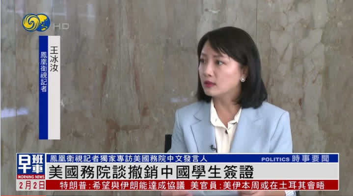 美國國務院中文發言人賈博1月30日接受鳳凰衛視獨家專訪時表示,美國國務卿魯比奧在去年5月發表撤銷部分中國學生簽證的聲明,不僅僅是針對中國,而是對所有赴美簽證申請者都要進行嚴格審查,特朗普政府仍然歡迎中國留學生赴美學習。
