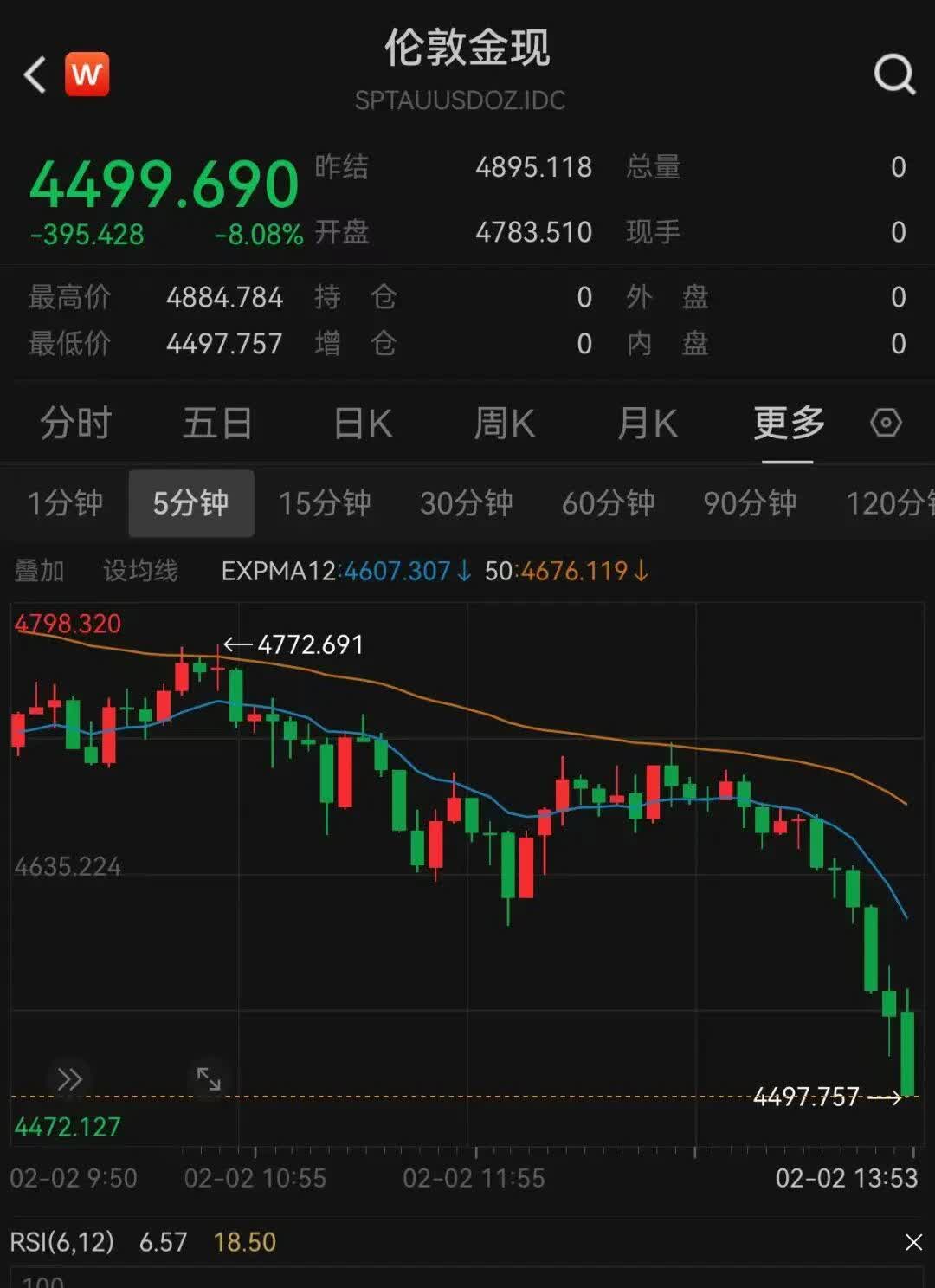 2日,現貨黃金跌跌不休,盤中剛剛跌破4500美元,跌超8%。