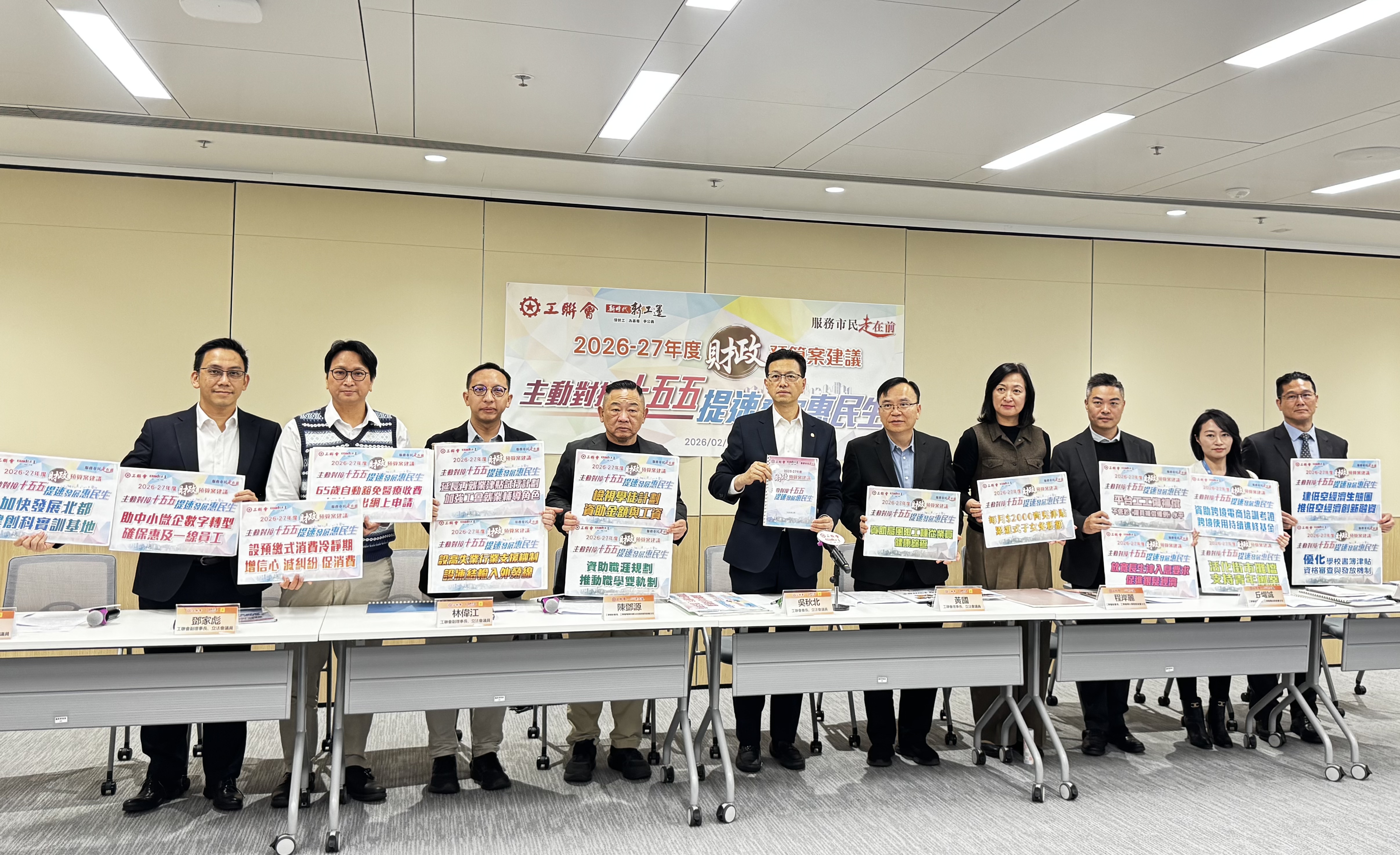(大公文匯全媒體 記者 周傾芫)工聯會代表今日(2月2日)與財政司司長陳茂波及多名政府官員會面,遞交工聯會2026-27年度財政預算案建議書,並於同日舉行記者會,介紹工聯會對財政預算案的重點建議。