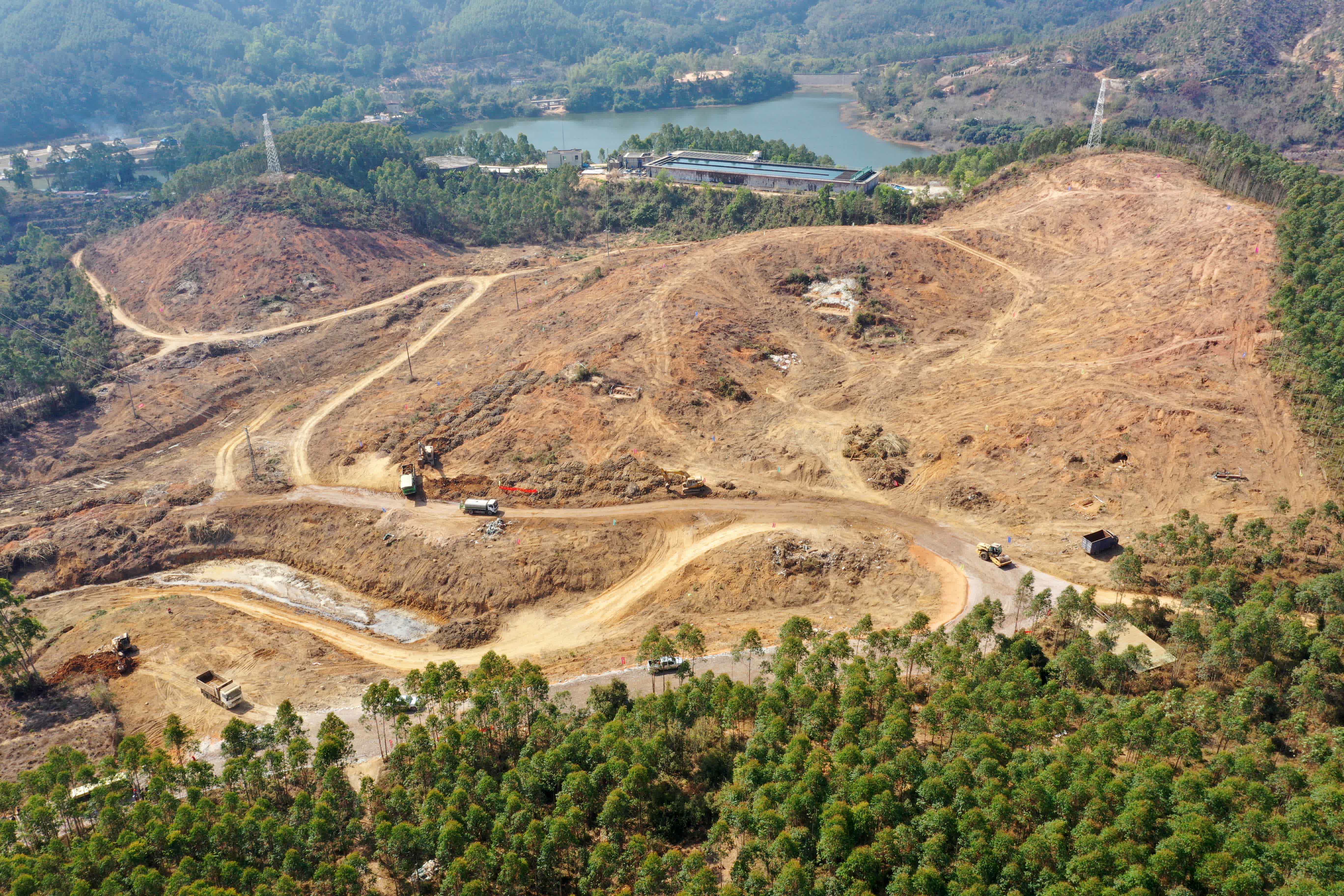 在惠東吉隆漢塘村的項目現場,數十台挖土機、推土機和運輸車正在加緊作業,現場一片繁忙,水廠的地表清表工作也已初步完成。