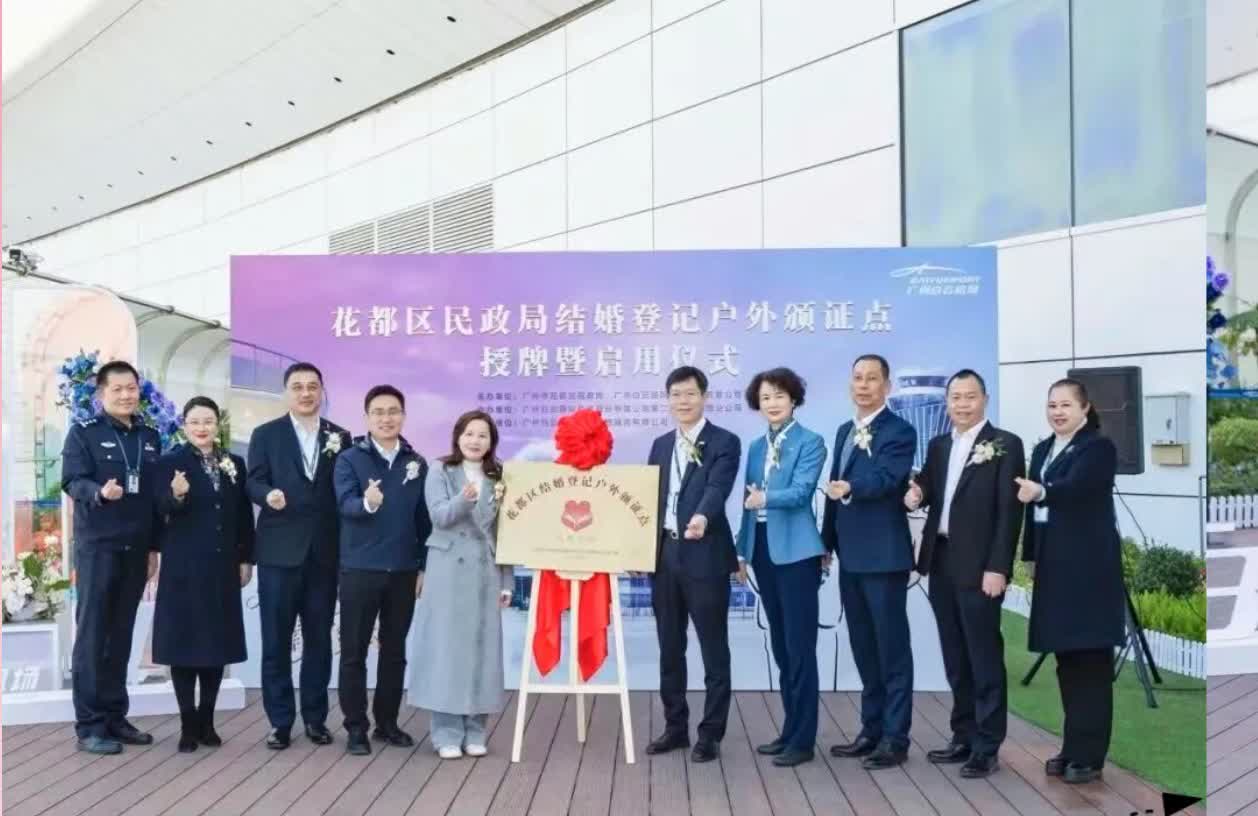 近日,由廣州市花都區民政局、廣州白雲國際機場股份有限公司共同舉辦,廣州白雲國際機場股份有限公司第二航站區管理分公司協辦的「愛在雲端·情定白雲」——T3航站樓觀景平台戶外婚姻頒證點授牌儀式圓滿舉行。這標誌着全國首個設在大型國際機場航站樓內的戶外婚姻頒證點正式啟用,廣州「花城有囍」幸福版圖喜添雲端新景。