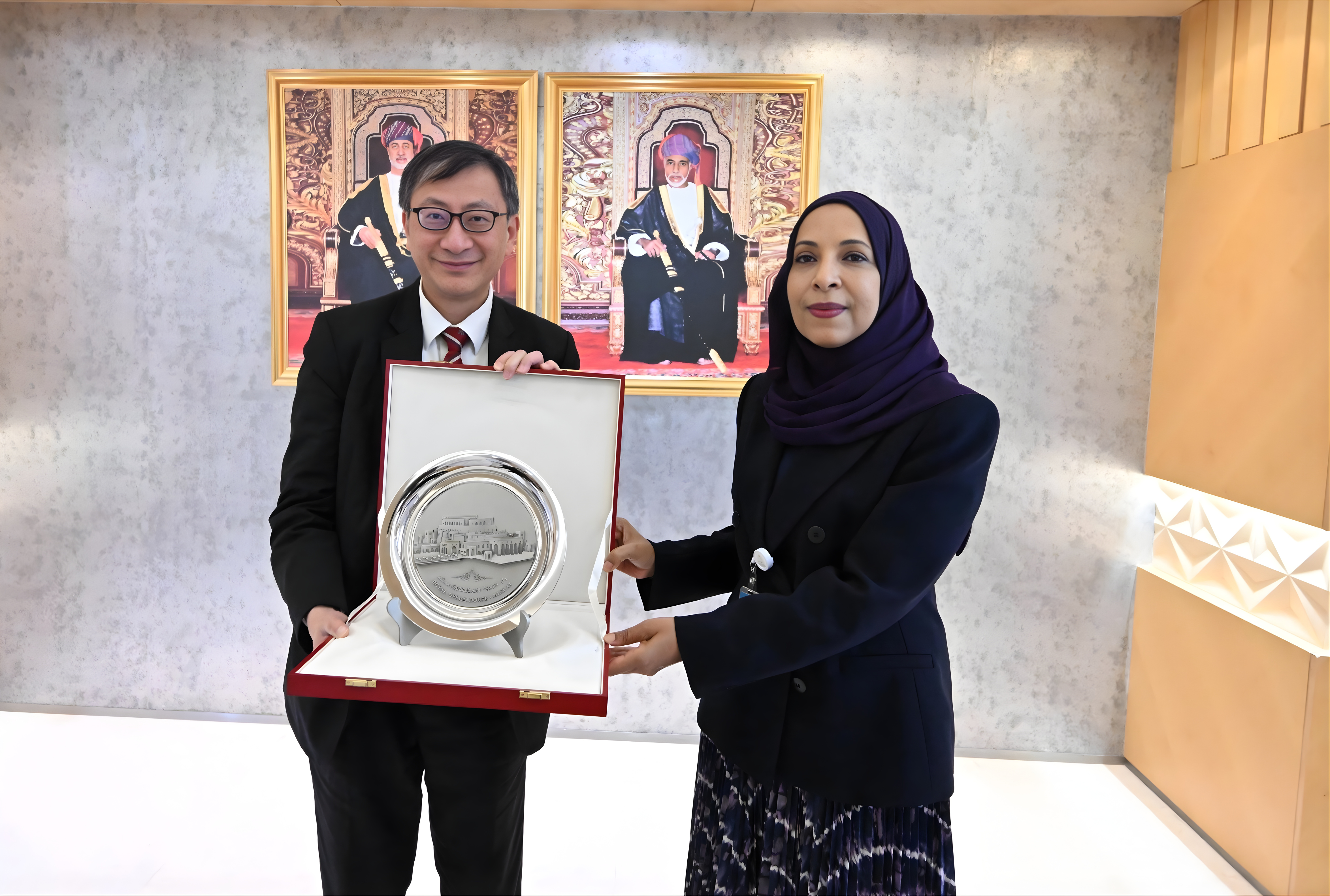 為拓展學術合作網絡,代表團此行亦訪問阿曼排名首位的蘇丹卡布斯大學(Sultan Qaboos University),與校長Fahad bin Al-Julanda Al Said閣下進行會談。基於與阿曼教育部達成的高層共識,兩校就籌辦學術會議、開展聯合研究、推動師生交流等務實合作項目,展開了深入探討。會談中,李教授特別指出教育在促進文化永續發展方面的關鍵作用,包括其對塑造身份認同、保存文化價值的重要影響,並對未來與阿曼高校深化教育及文化合作表達了積極願景。
