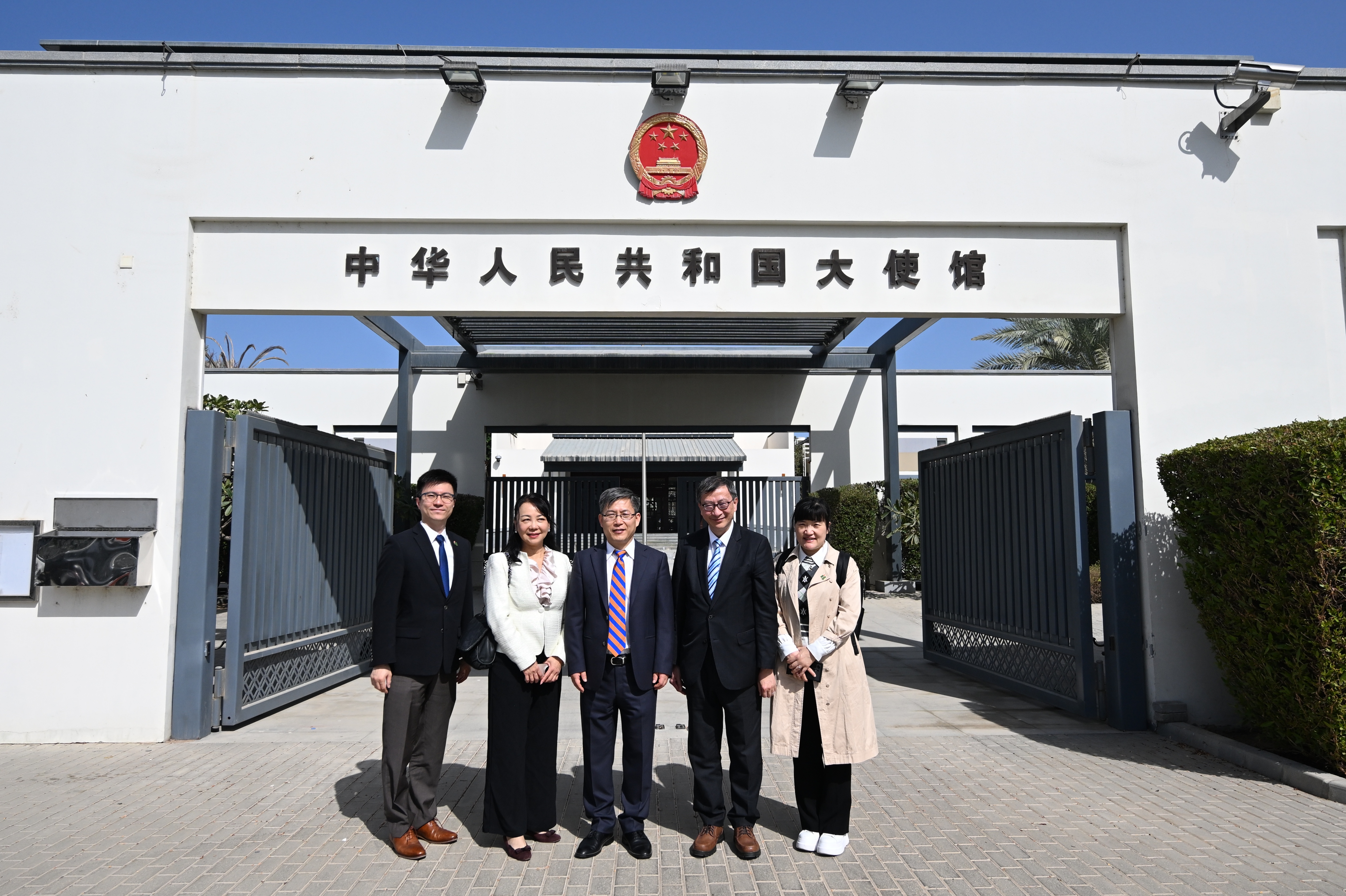 訪問期間,代表團專程拜訪中國駐阿曼大使館,向中國駐阿曼蘇丹國特命全權大使呂健閣下匯報教大在「一帶一路」框架下與阿曼的合作成果,獲大使充分肯定。大使指出,阿曼當前發展勢頭強勁,正處於重要發展機遇期,加上與中國關係友好,對漢語學習的需求越來越大,為雙方在教育領域的合作開創更多機會。大使鼓勵教大充分發揮專業優勢,積極對接當地發展需求,同時表示使館亦將為中阿教育合作持續提供支持。