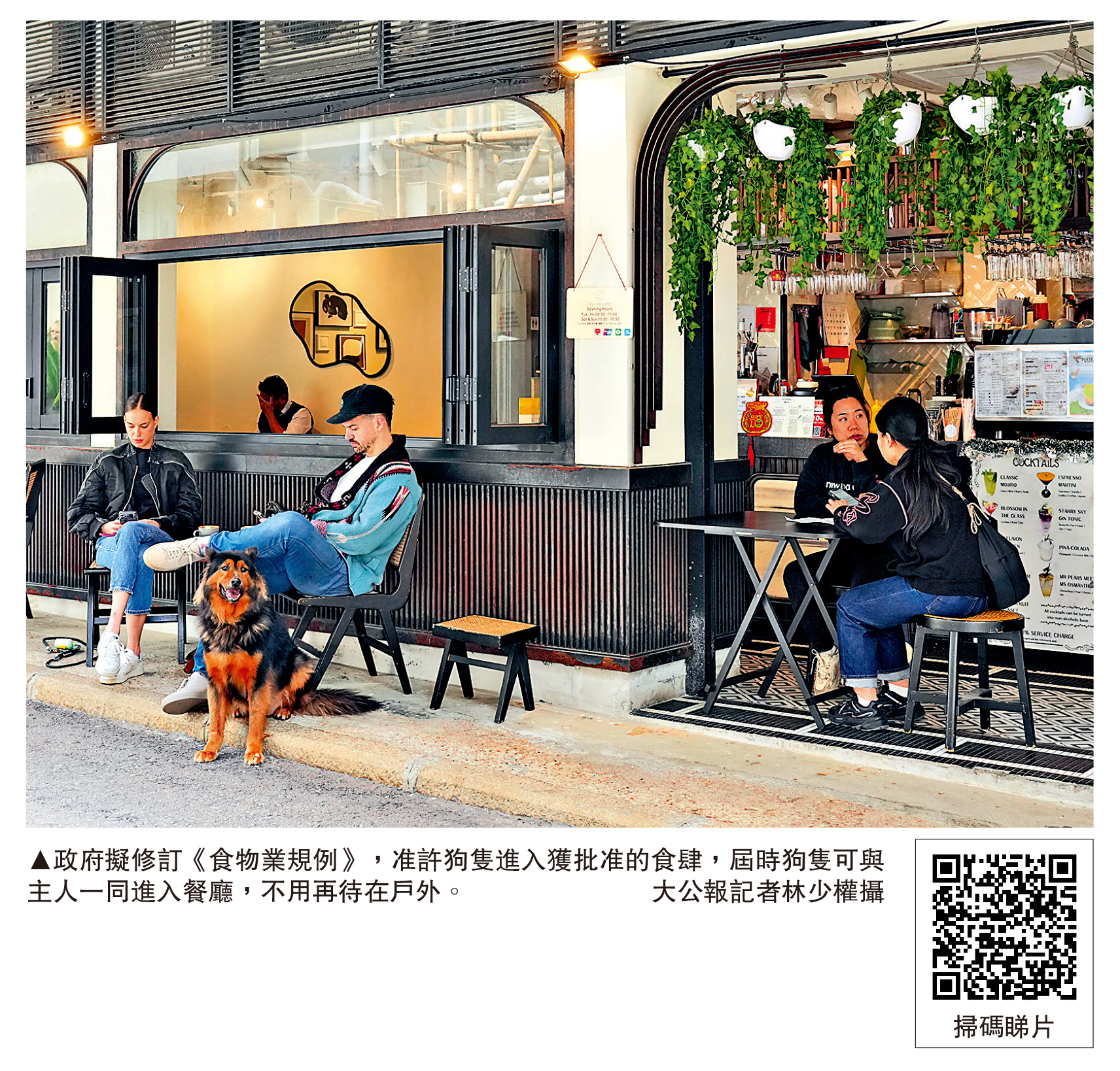 (大公報 記者 易曉彤)香港養寵文化越趨盛行,寵物經濟漸受重視。特區政府建議修訂《食物業規例》,讓狗主帶狗隻進入獲批准的食肆。新措施將以「小步走」方式推展,首階段設約500至1000個名額,火鍋和燒烤店禁止申請,預計最快今年6月批出,半年後再檢視。獲批餐廳須有明確標示,進入食肆的狗須綁上長1.5米內的牽引帶並不能上枱,有「傷人案底」的狗與格鬥犬不准入食肆。食肆一年內違規三次會被剔出名單,一年內不得再申請。