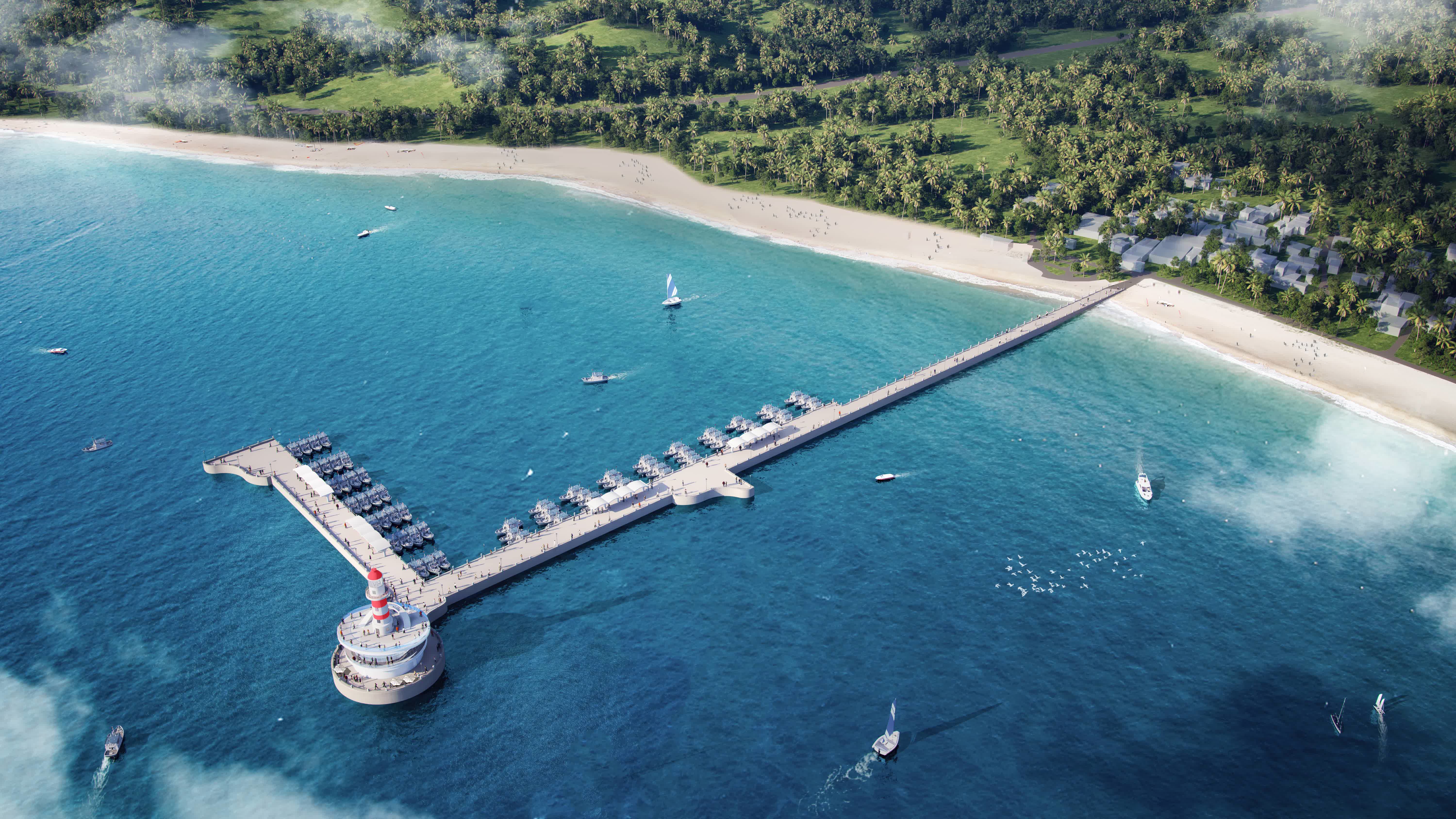 該項目位於三亞市崖州區,是三亞推進國家級漁港經濟區建設、夯實漁業發展基礎的重點工程。碼頭主體結構採用高樁墩台式設計,規劃建設L型碼頭,共設置17個泊位,兼顧生產與休閒雙重功能,其中包括10個專業漁船泊位與7個休閒漁船泊位,同步配套休閒平台、綜合服務中心、卸漁棚及完善的水電保障設施,建成後將成為集漁業生產、休閒旅遊、綜合服務於一體的現代化漁港綜合體。