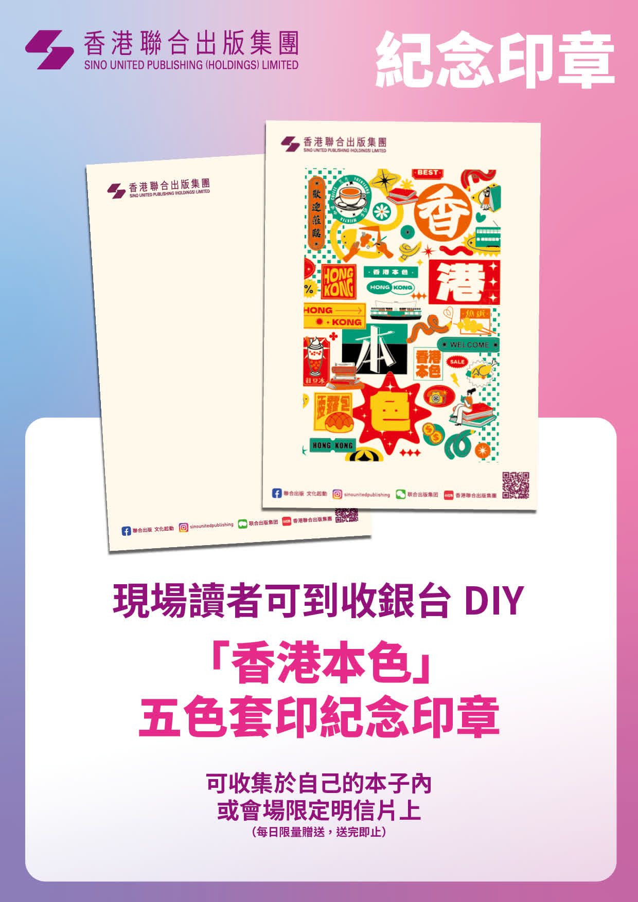 除上述各項優惠折扣之外,讀者更可到展位現場免費體驗疊印蓋章,只要順序蓋上五種顏色印章,一幅精緻的圖案便會出現眼前,圖案融合了港式奶茶、菠蘿包、紅豆冰、「叮叮」電車、尖沙咀鐘樓等眾多香港特色元素。歡迎各位前來蓋出您的「香港本色」!