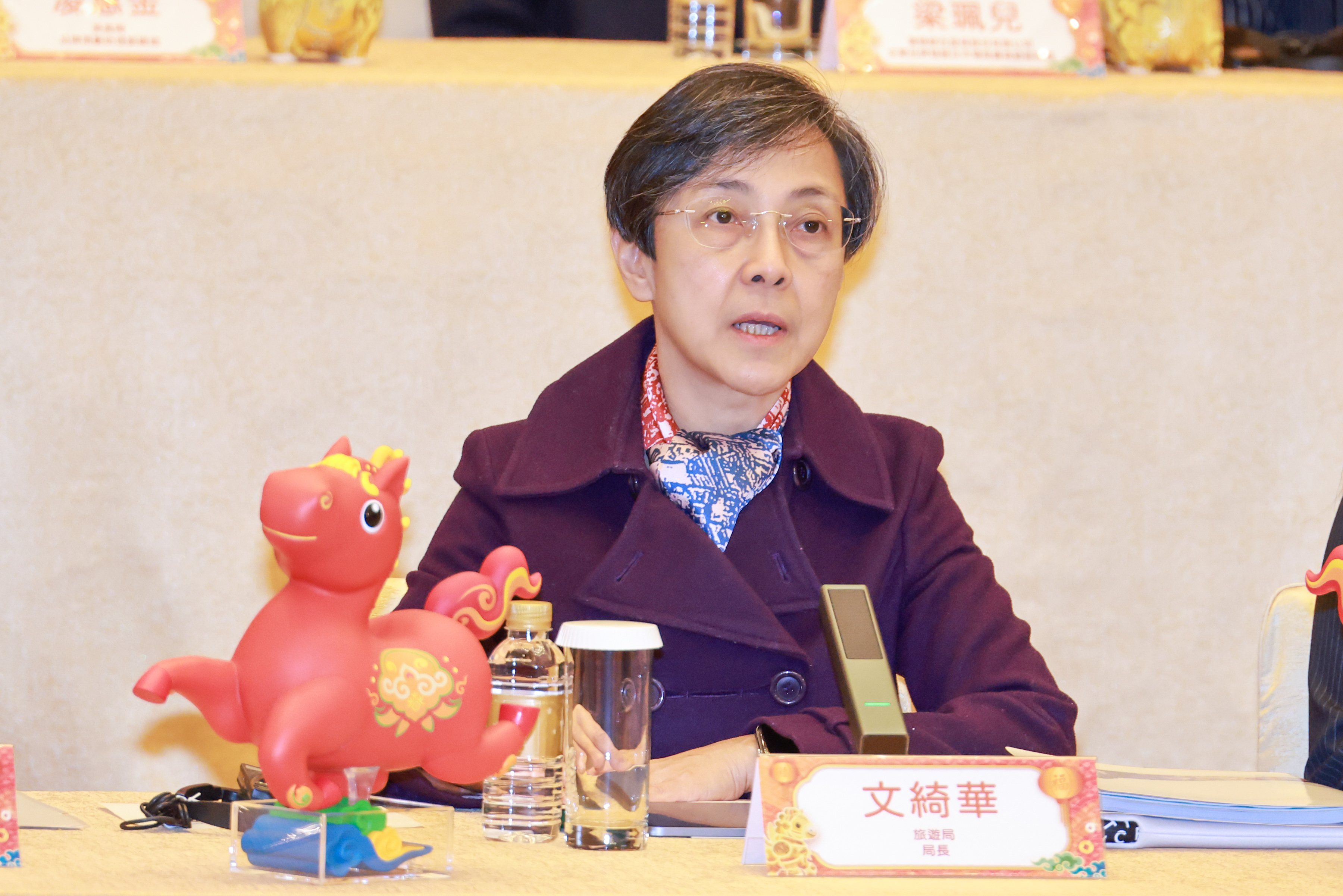 旅遊局局長文綺華致辭表示,局方致力推動「旅遊+盛事」提質發展,通過舉辦大型品牌活動累積經驗並引入新元素,今年嘗試從演出體驗、科技與藝術融合和延伸節慶氛圍等多個維度致力提質升級,進一步豐富「旅遊+」內涵與夜間魅力,推動澳門綜合旅遊休閒業多元發展。今年花車匯演活動預算為3680萬澳門元,按年增加百分之五,主要涉及新增新口岸區系列活動經費。