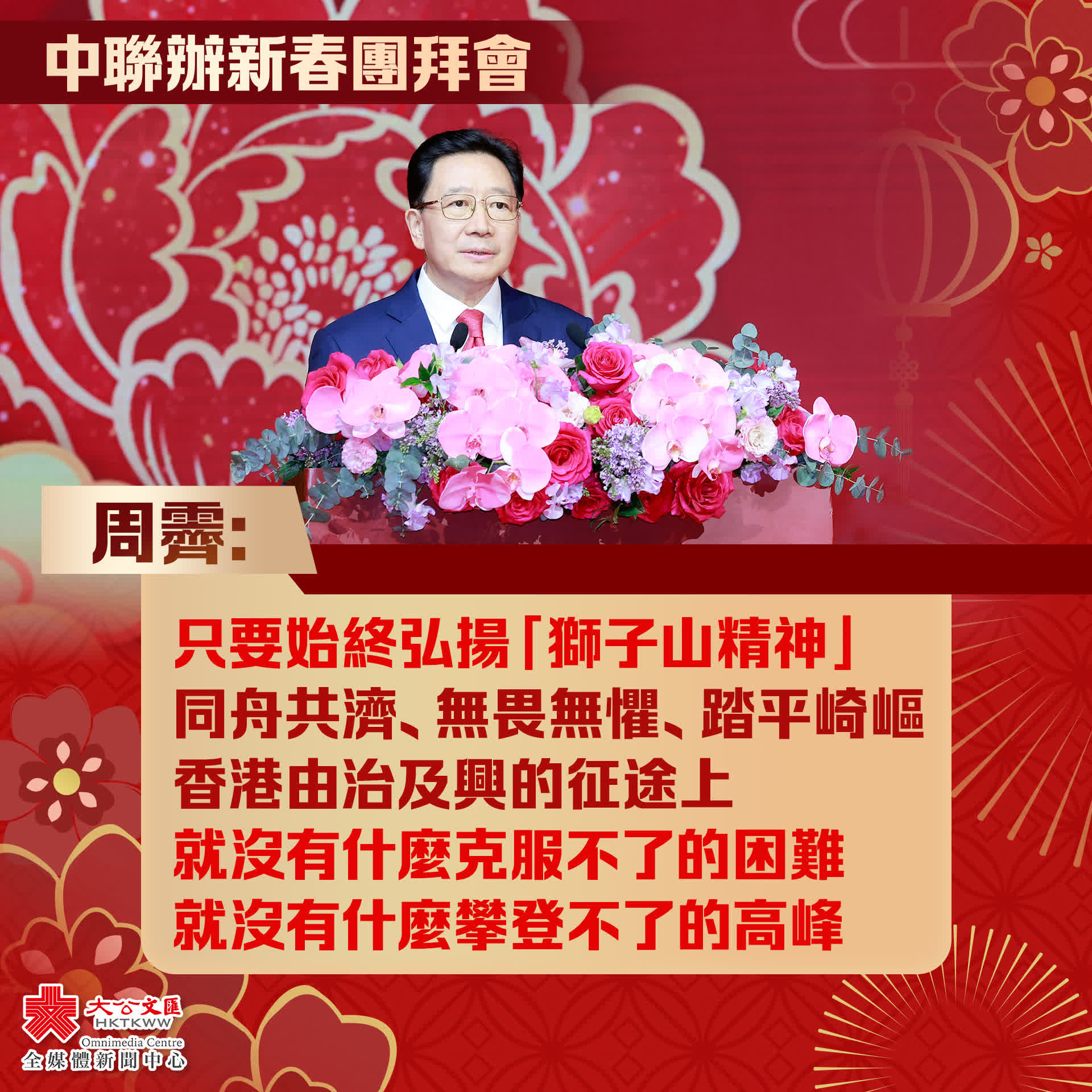 關鍵詞:新春團拜會周霽中聯辦山東艦立法會十號風球宏福苑