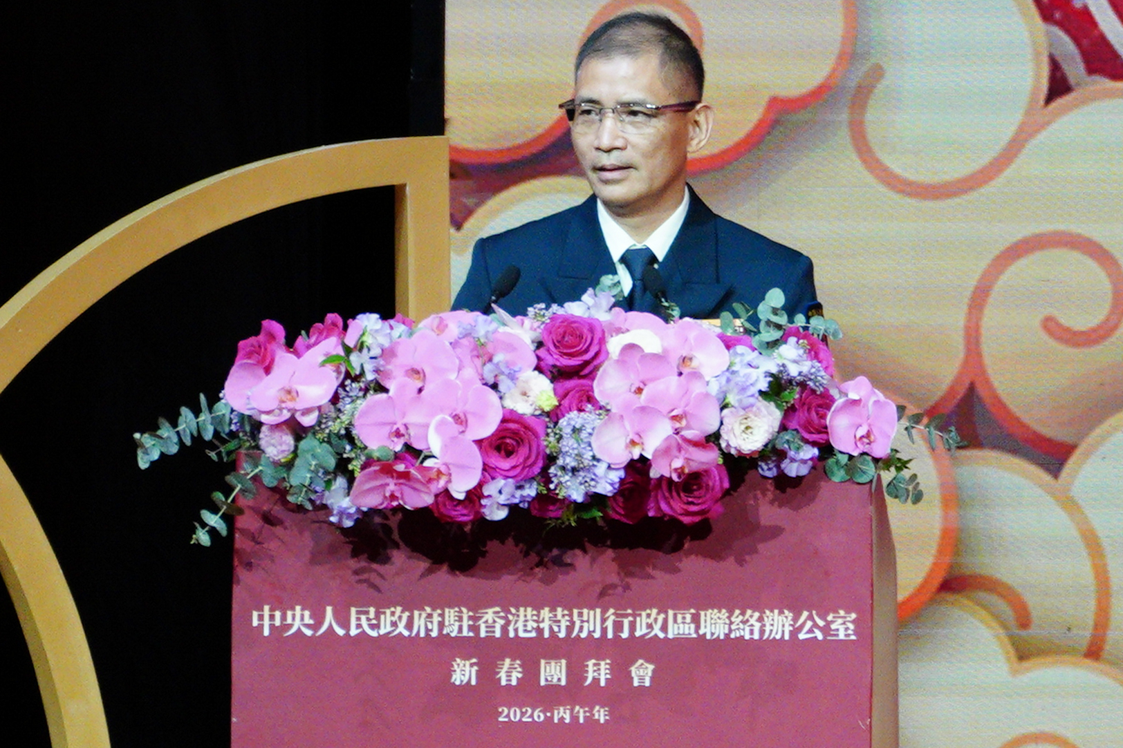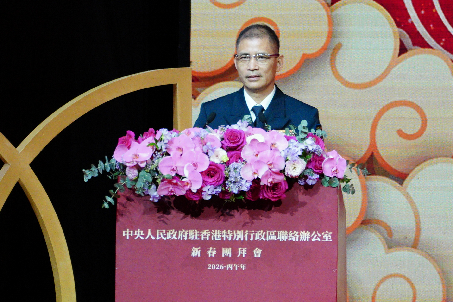 大公文匯全媒體報道,中央政府駐港聯絡辦2026年新春團拜會今晚(4日)在香港會議展覽中心大會堂舉辦。中國人民解放軍駐香港部隊副司令員譚志偉致辭時指出,過去一年,在黨中央的堅強領導下、在特區政府的有力帶領下,香港由治及興邁出堅實步伐,國際金融、貿易、航運中心地位持續穩固,第八屆立法會選舉圓滿順利舉行,北都區建設快馬加鞭,民生改善交出亮麗成績,愛國愛港正能量愈發充盈。