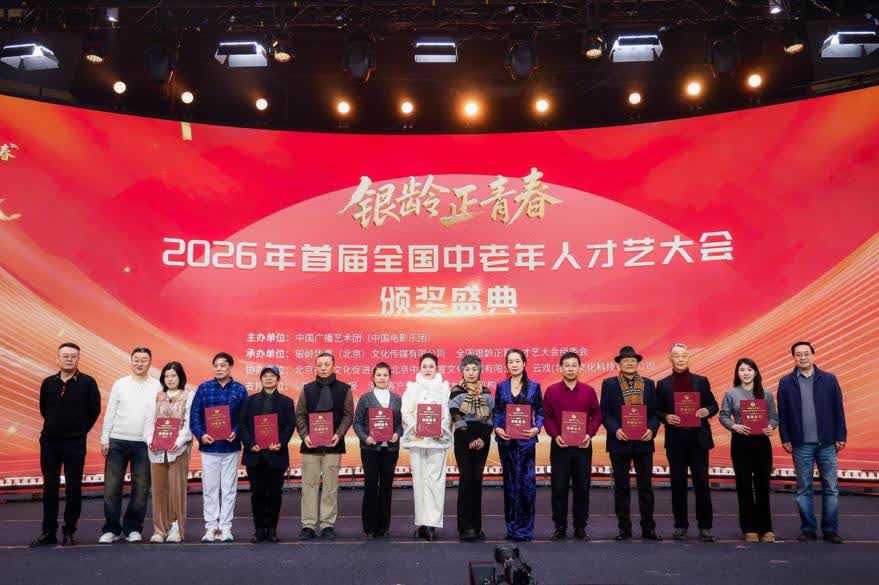 (大公文匯網 記者江鑫嫻)由中國廣播藝術團主辦的「銀齡正青春——2026年首屆全國中老年人才藝大會」頒獎盛典日前在北京舉行,為這場覆蓋全國的中老年文化盛事畫上圓滿句點。活動於2025年啟動,以北京、重慶、山東、湖北、內蒙古五大賽區為核心,通過線上線下結合的方式,在全國範圍內展開。據統計,大會累計吸引了超過1.2萬名中老年文藝愛好者報名參與。活動涵蓋歌曲、舞蹈、戲曲、器樂演奏、模特走秀、朗誦及情景劇等多種藝術門類,旨在為這一群體搭建一個綜合性的才藝展示與交流平台。