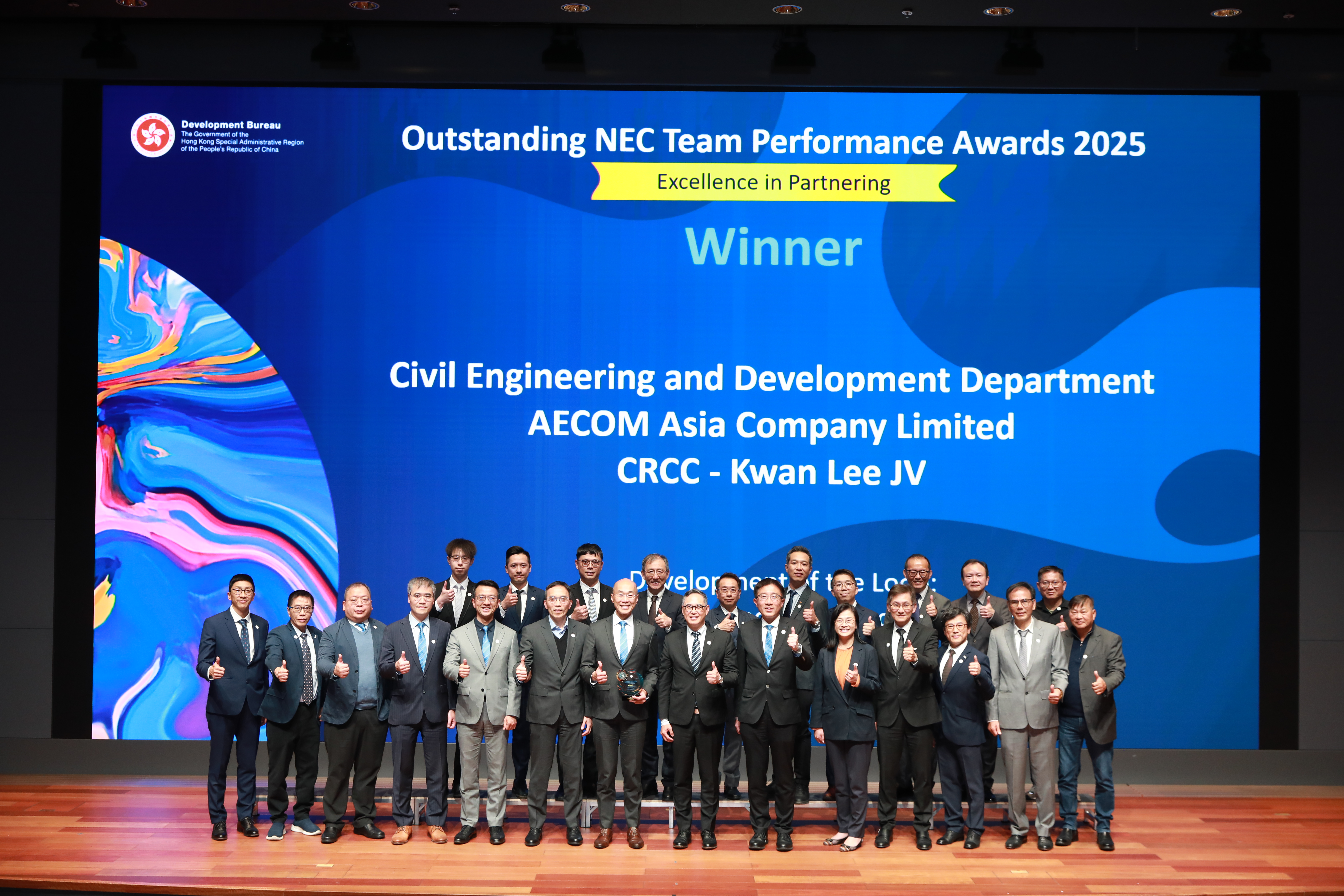 設立該獎項旨在鼓勵業界實踐NEC精神,並持續推動其普及應用。發展局常任秘書長(工務)劉俊傑在典禮上致辭時強調,NEC合約模式強調業主、項目經理及承建商之間互信和合作。他讚揚獲獎工程團隊表現出色,為業界樹立典範。是次比賽反應熱烈,吸引逾60支團隊參賽,範疇涵蓋大型基建至維修保養。得獎團隊包括工務部門、香港鐵路有限公司和中華電力有限公司。發展局於去年11月舉行的NEC亞太區會議2025上發布「NEC工程及建造合同」香港版中文譯本。這是發展局推動大灣區在建設領域規則銜接的關鍵一步,將備受國際認可的香港工程管理模式引進大灣區,為香港與大灣區其他城市的合作奠定更堅實基礎。為落實二○二五年《施政報告》的相關建議,發展局正與前海管理局商討於前海挑選合適的試點項目,採用香港的NEC合約模式。