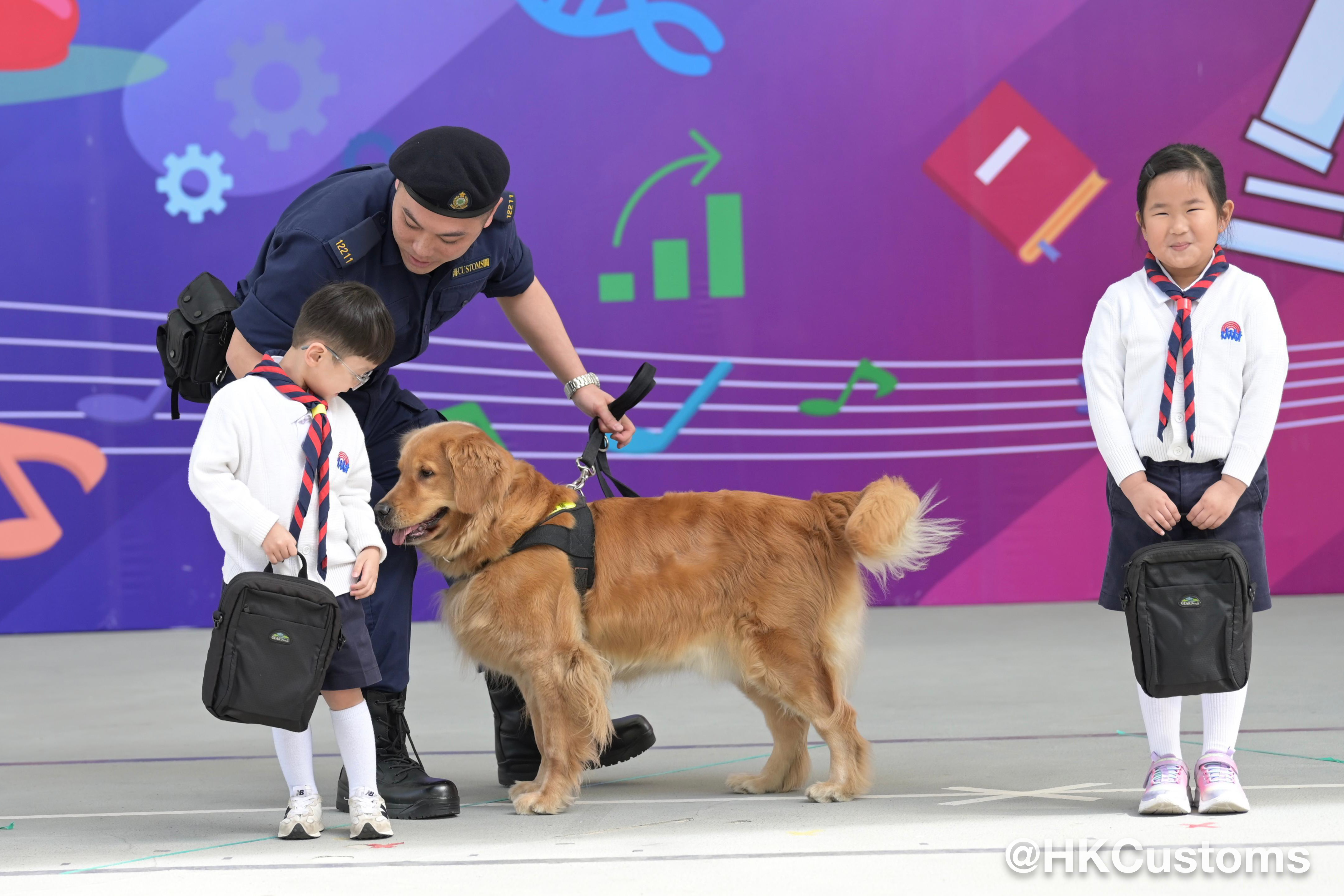 現場亦安排了香港海關搜查犬示範,市民可以近距離觀賞搜查犬的日常緝毒工作,氣氛十分熱鬧。