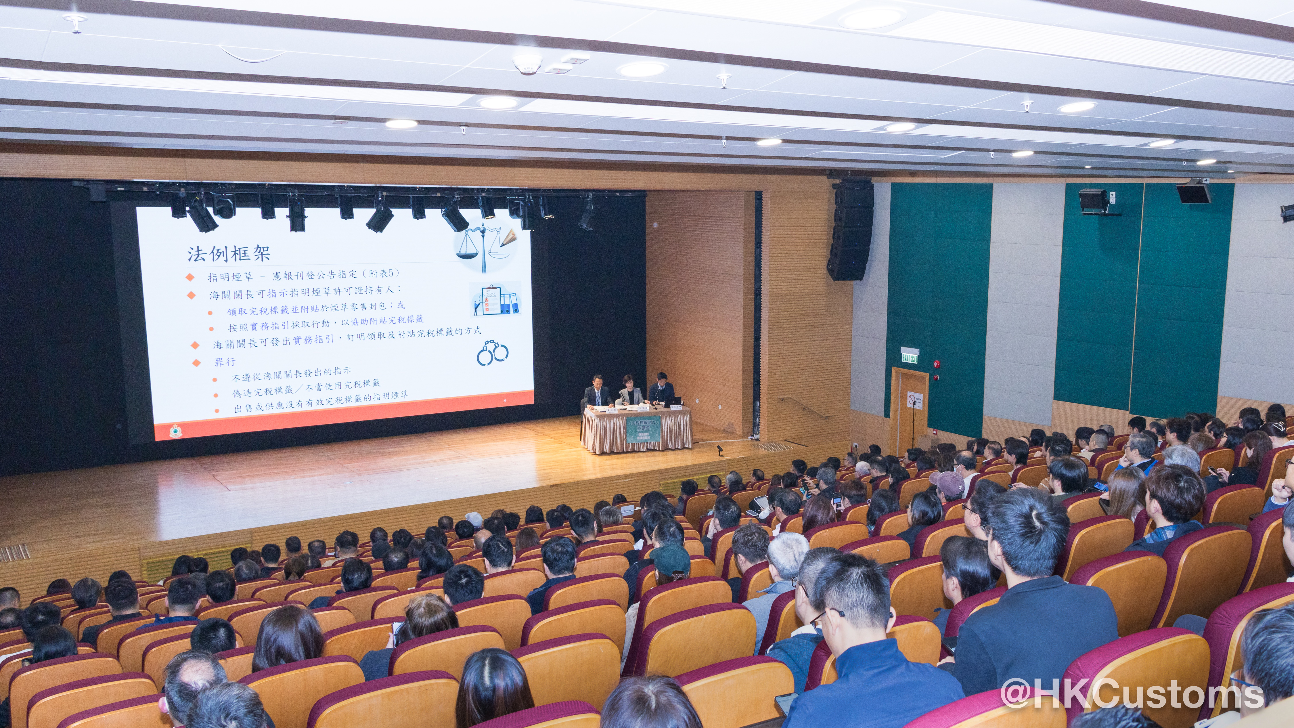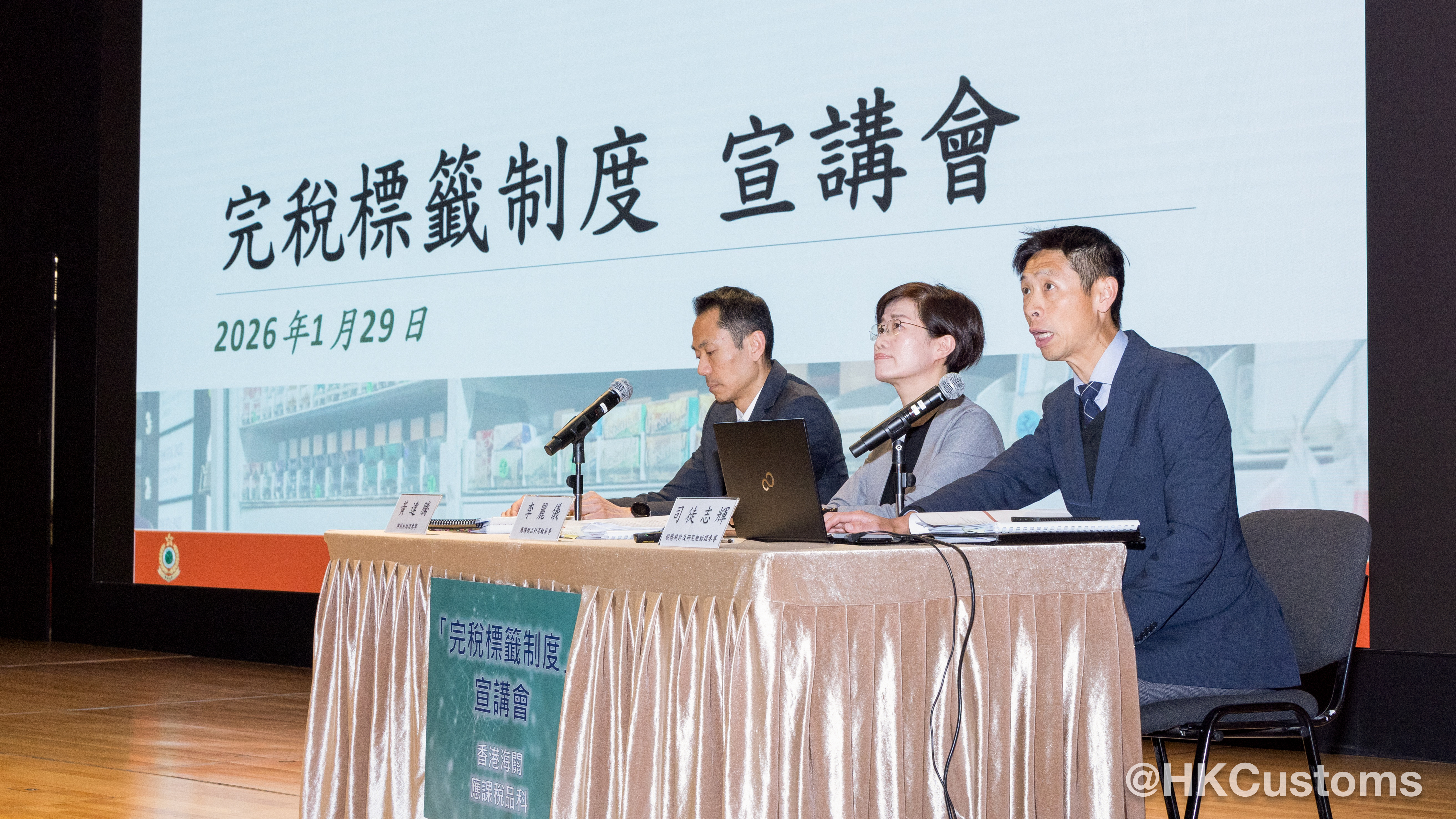 香港海關一月二十九日於海關總部大樓舉行「完稅標籤制度」宣講會,向煙草業界全面介紹制度的最新進展及未來安排。會議吸引約一百八十名業界代表踴躍出席,包括煙草製造商、進出口商、保稅倉營運商、物流、零售商及報販代表。