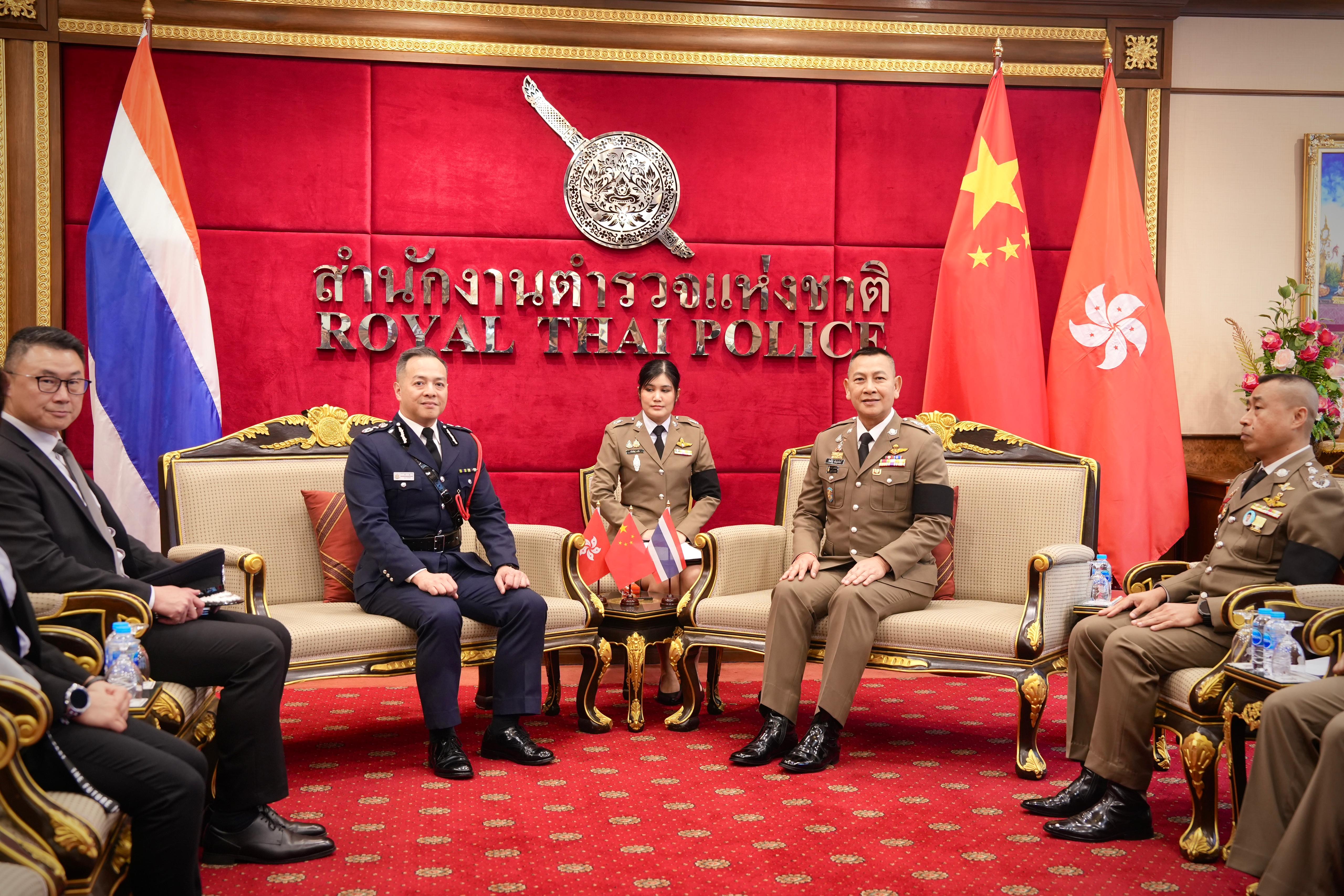 周一鳴昨日(2月4日)禮節性拜訪泰國皇家警察總長Kittharath Punpetch,就雙方關注的事宜交流,探討強化兩地警務合作及情報交流,共同打擊罪案,維護社會治安。會面期間,周一鳴對泰國警方在重大跨境案件中密切配合與高效執法深表謝意,包括在泰國警方協助下,香港警方逮捕一名涉及一宗發生於1989年的謀殺案並潛逃多年的疑犯。