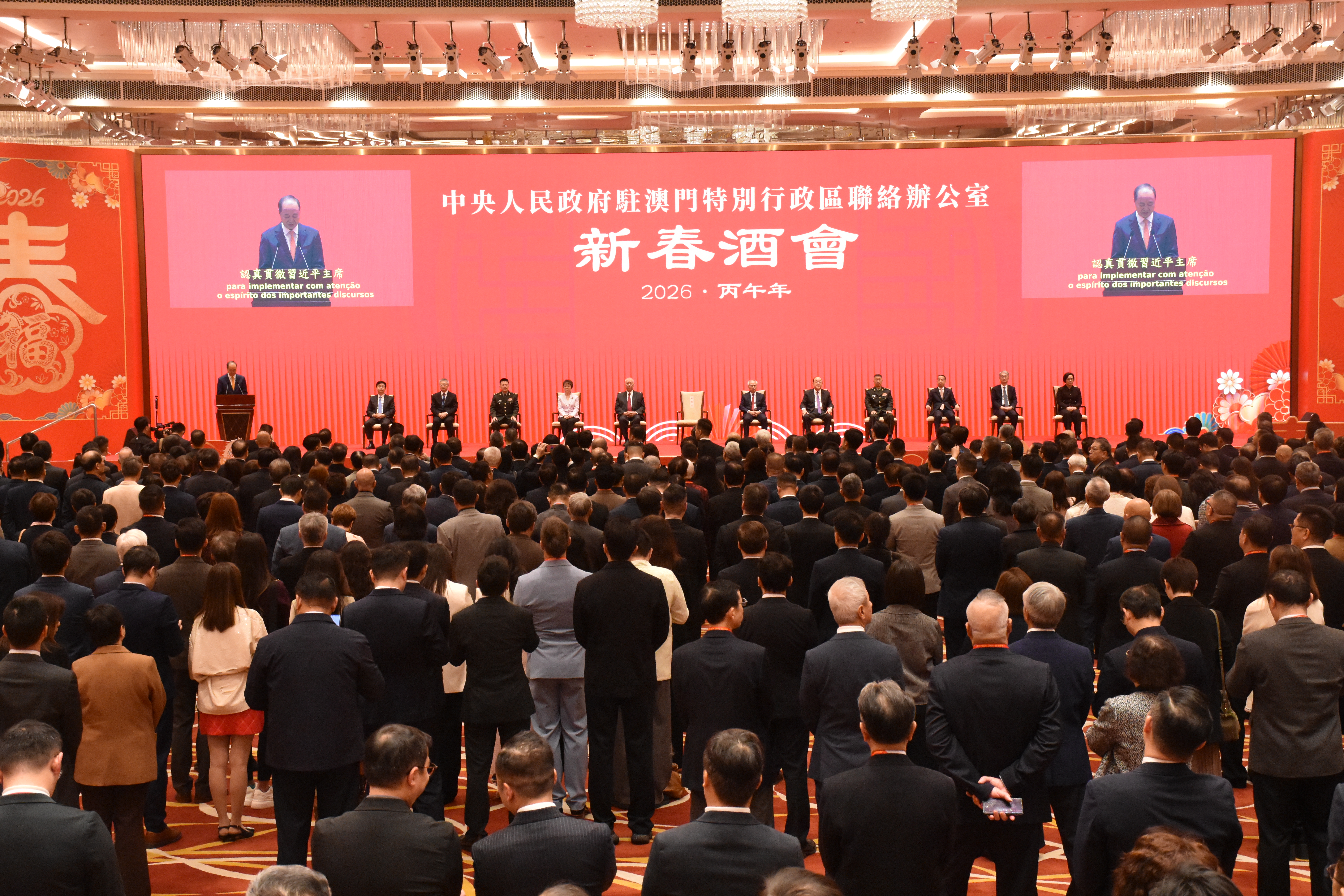 (大公文匯網 記者 鍾佩欣、王祥康)中央政府駐澳門聯絡辦公室5日下午舉行2026年新春酒會。受中央港澳辦主任、國務院港澳辦主任夏寶龍委託,中央港澳辦副主任、國務院港澳辦副主任,中央政府駐澳門聯絡辦公室主任鄭新聰代表夏寶龍、中央港澳辦、國務院港澳辦和中央政府駐澳門聯絡辦公室,向澳門居民致以新春祝福。