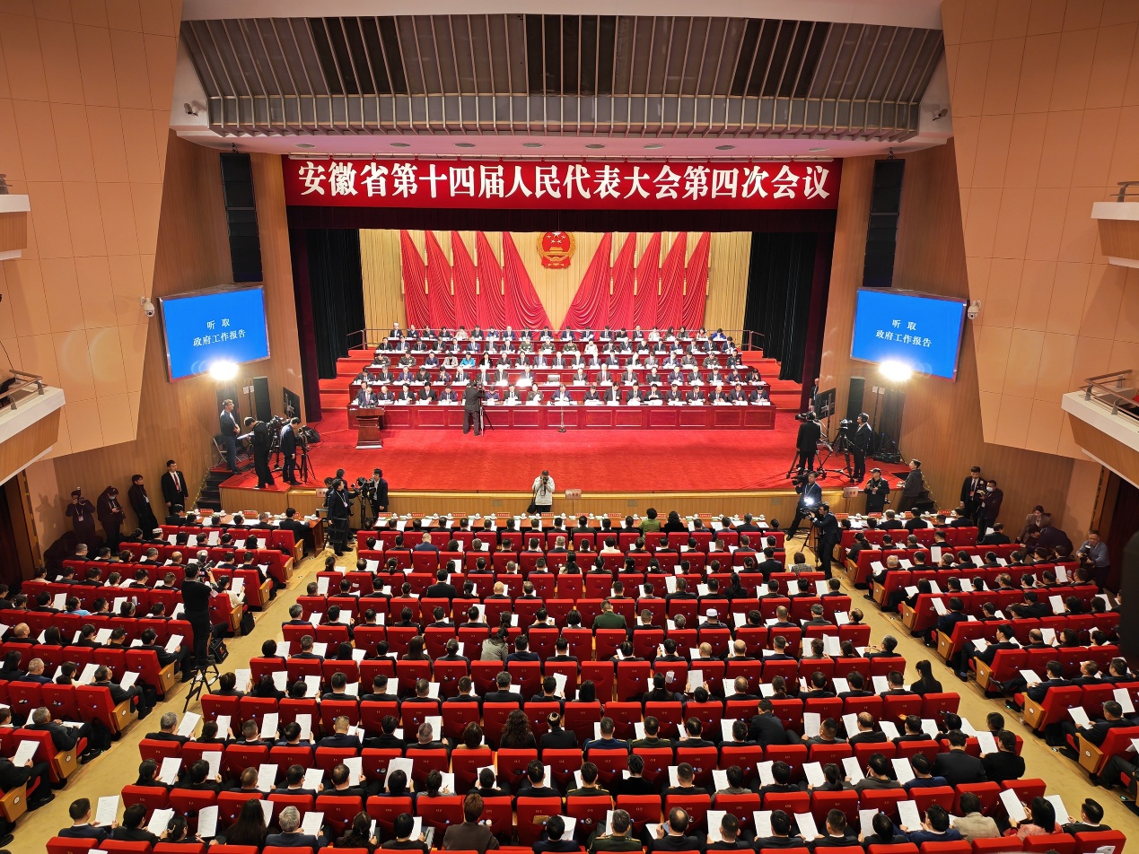 2月5日上午9時許,安徽省第十四屆人民代表大會第四次會議在安徽省合肥市安徽大劇院開幕。安徽省委書記、省人大常委會主任、大會執行主席梁言順主持大會。安徽省人民政府省長王清憲作《政府工作報告》。