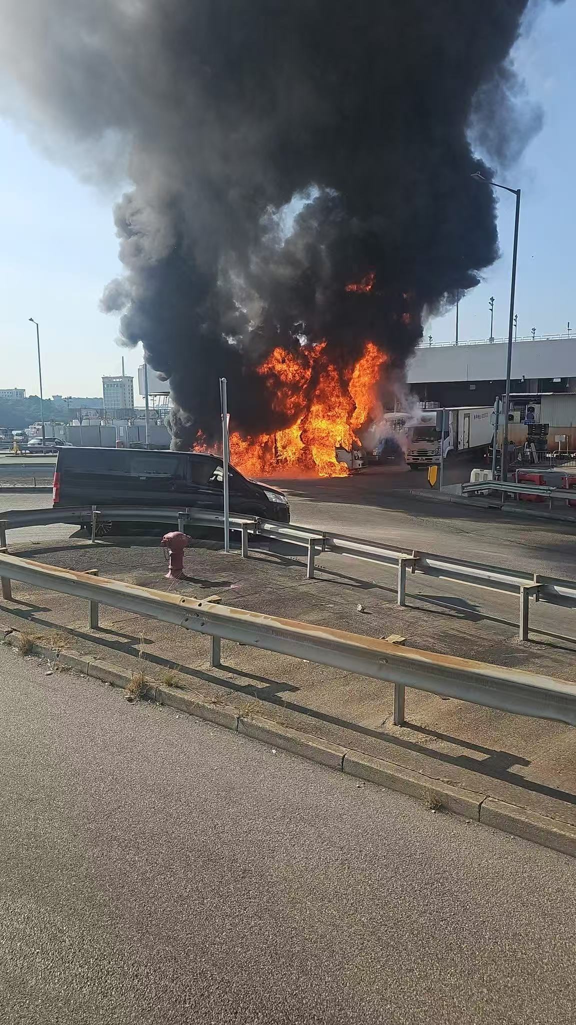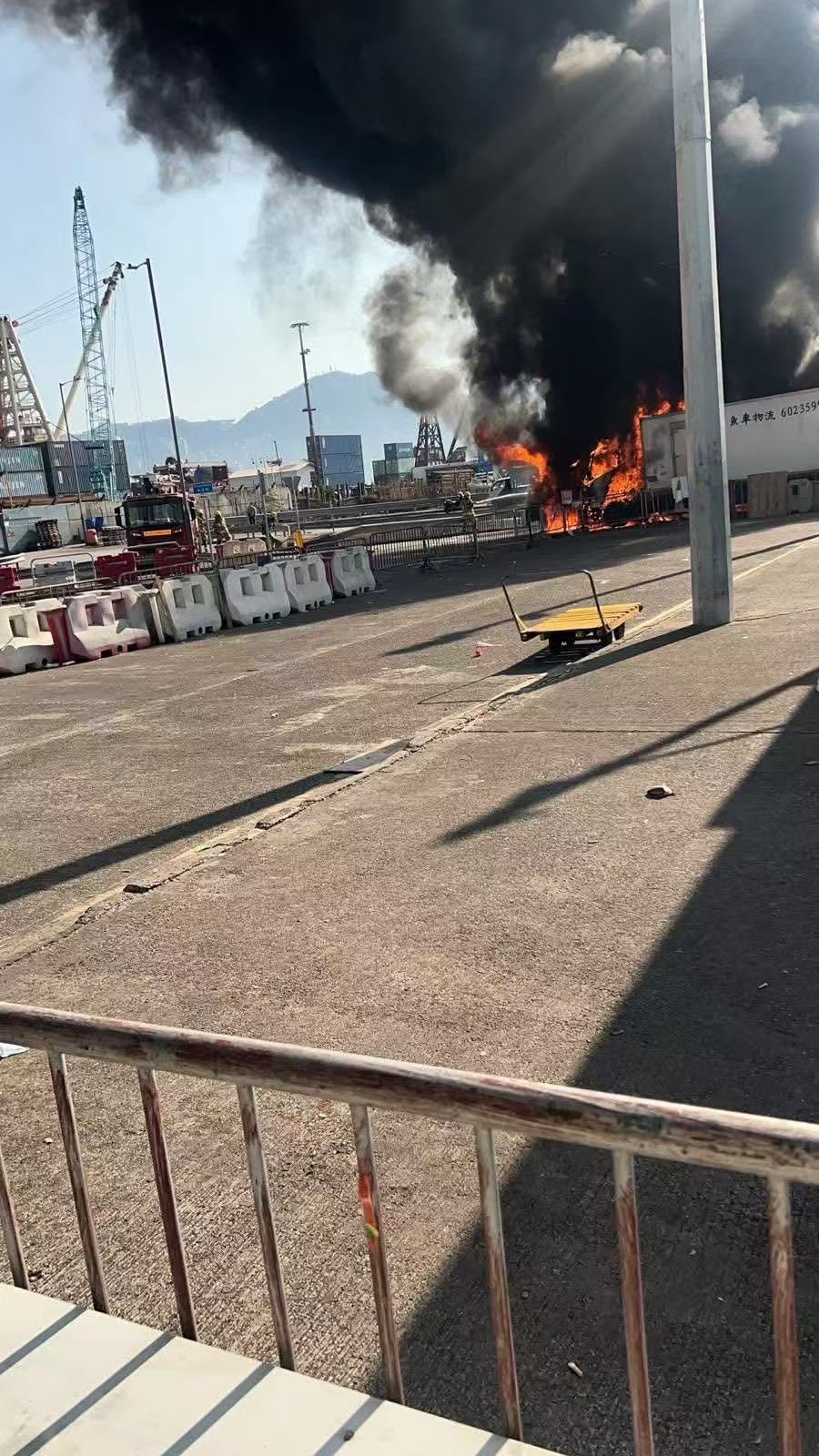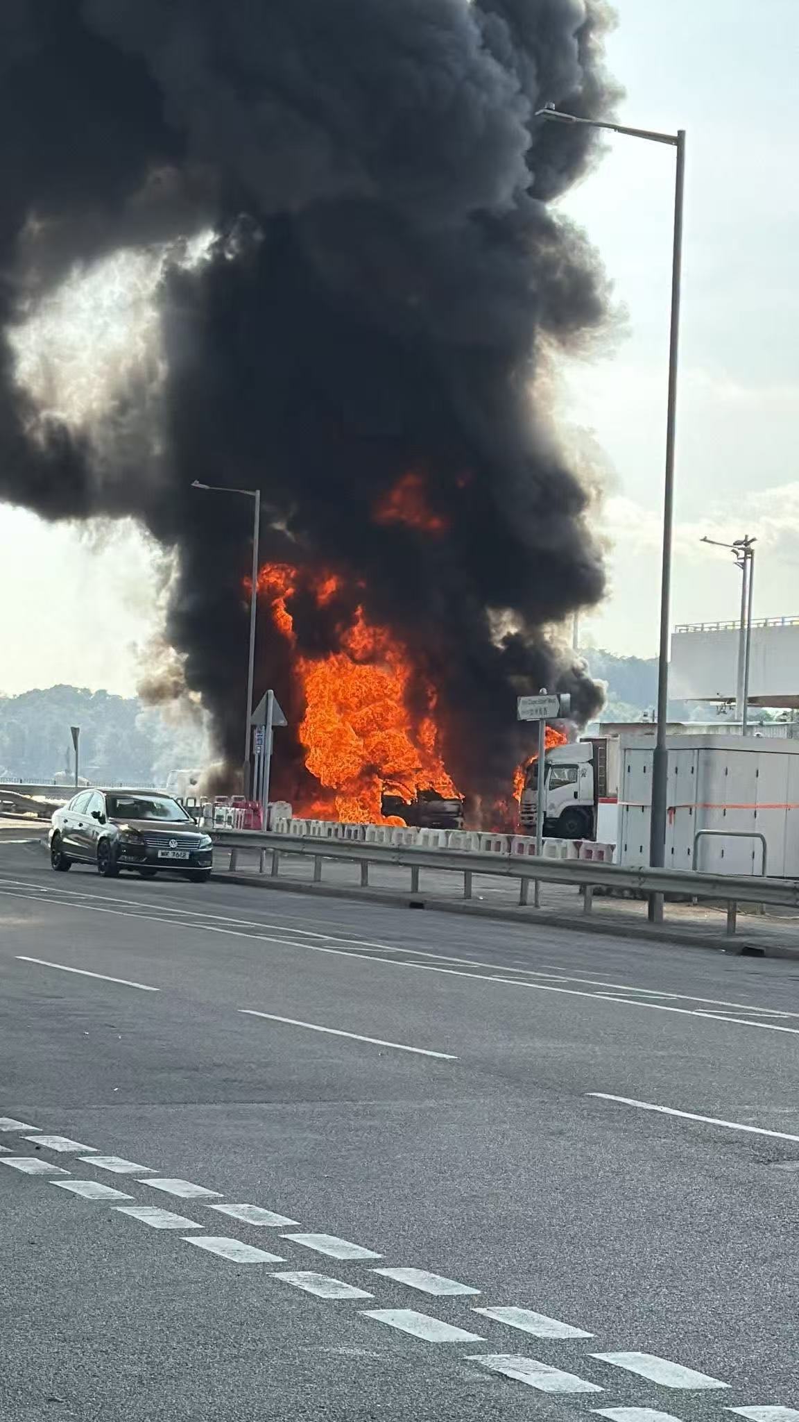 據網絡圖片可見,涉事車輛已被黑煙和大火籠罩,僅剩車頭尚未被燒及。多位網民表示,濃煙在很遠的地方都可以看見,遠至西九文化區一帶、甚至港島均可清晰見到煙柱。警方正調查事件起因。