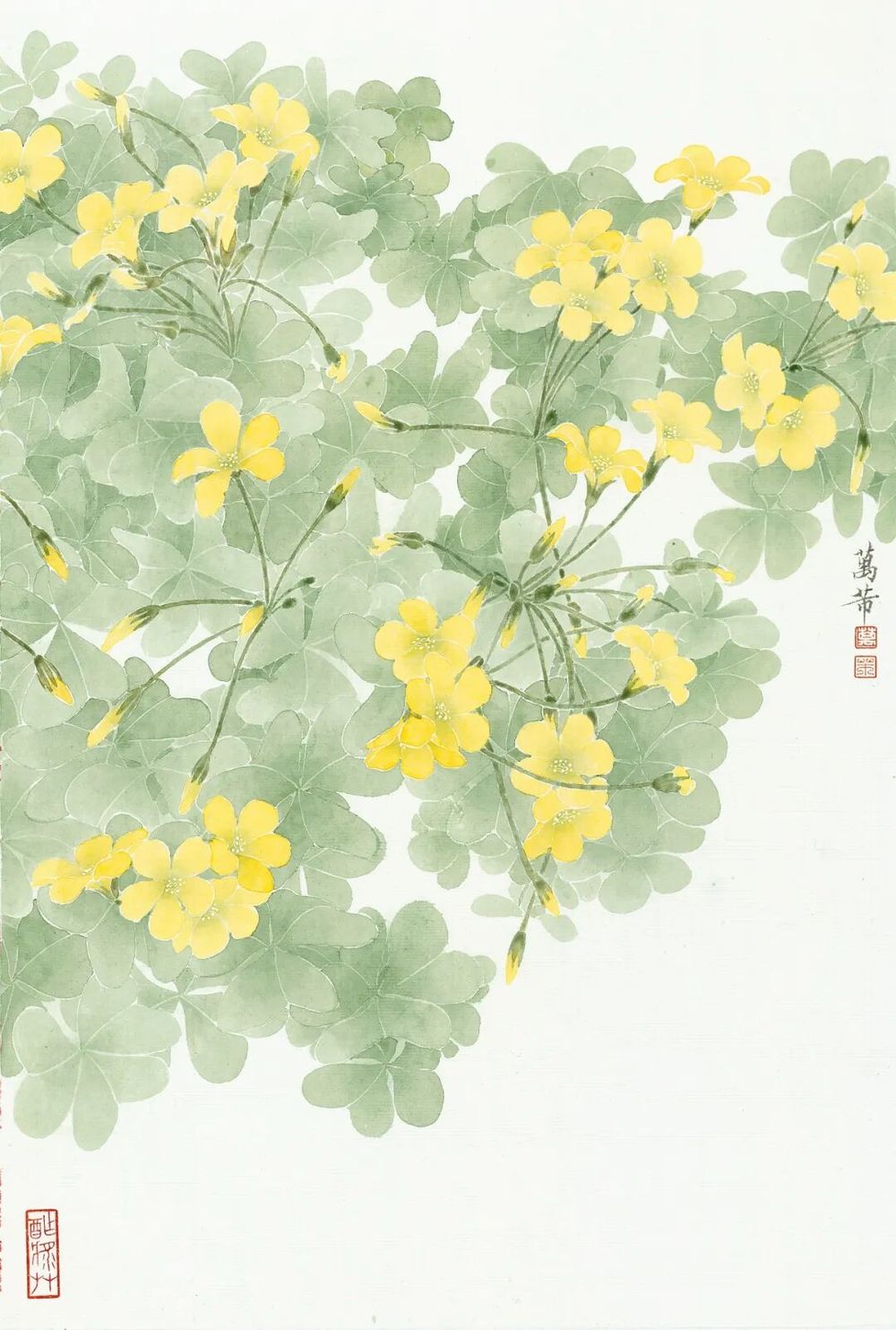 看似普通的一草一木,在萬芾的作品中清新明麗、純粹溫潤,被賦予了新的生命,別有一番情趣和韻味。