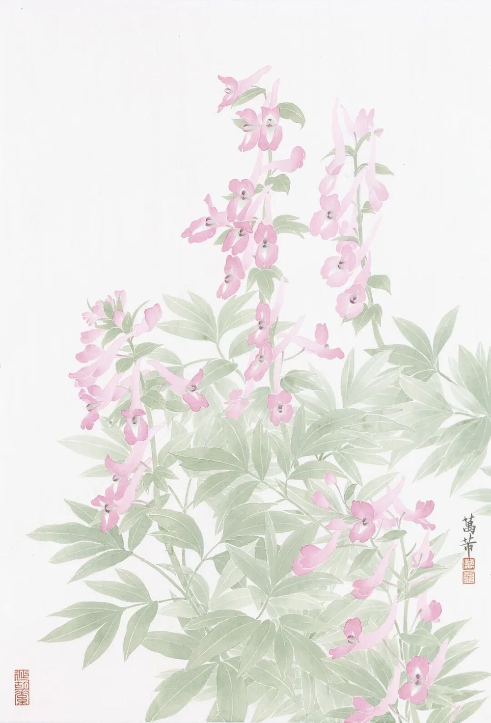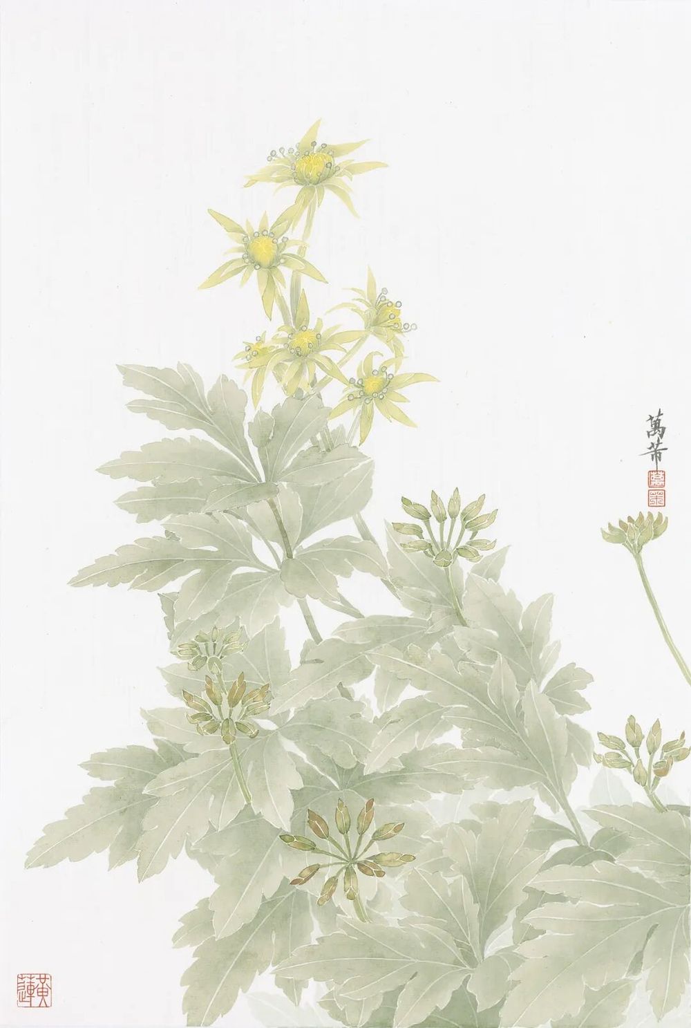 著名工筆花鳥畫家、上海文史研究館館員、上海中國畫院畫師、上海覺群書畫院畫師萬芾近年來從《本草綱目》中汲取靈感,嘗試用中國畫技巧繪製藥用植物。
