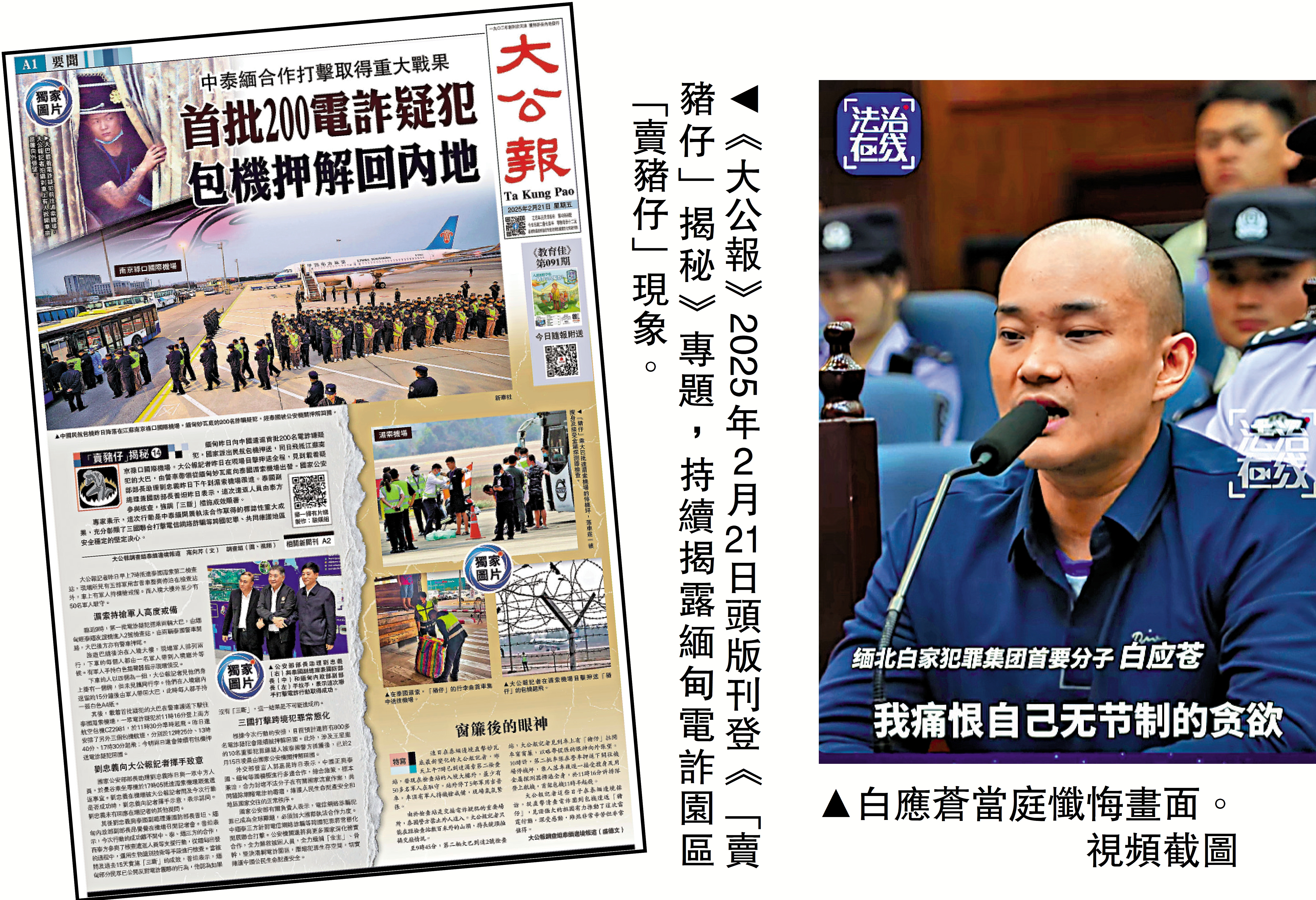 (大公報記者 趙一存 北京報道)近日,深圳市中級人民法院依法對緬北白家犯罪集團首要分子白應蒼執行死刑。2月6日,「央視法治在線」視頻號曝光白應蒼當庭懺悔視頻。