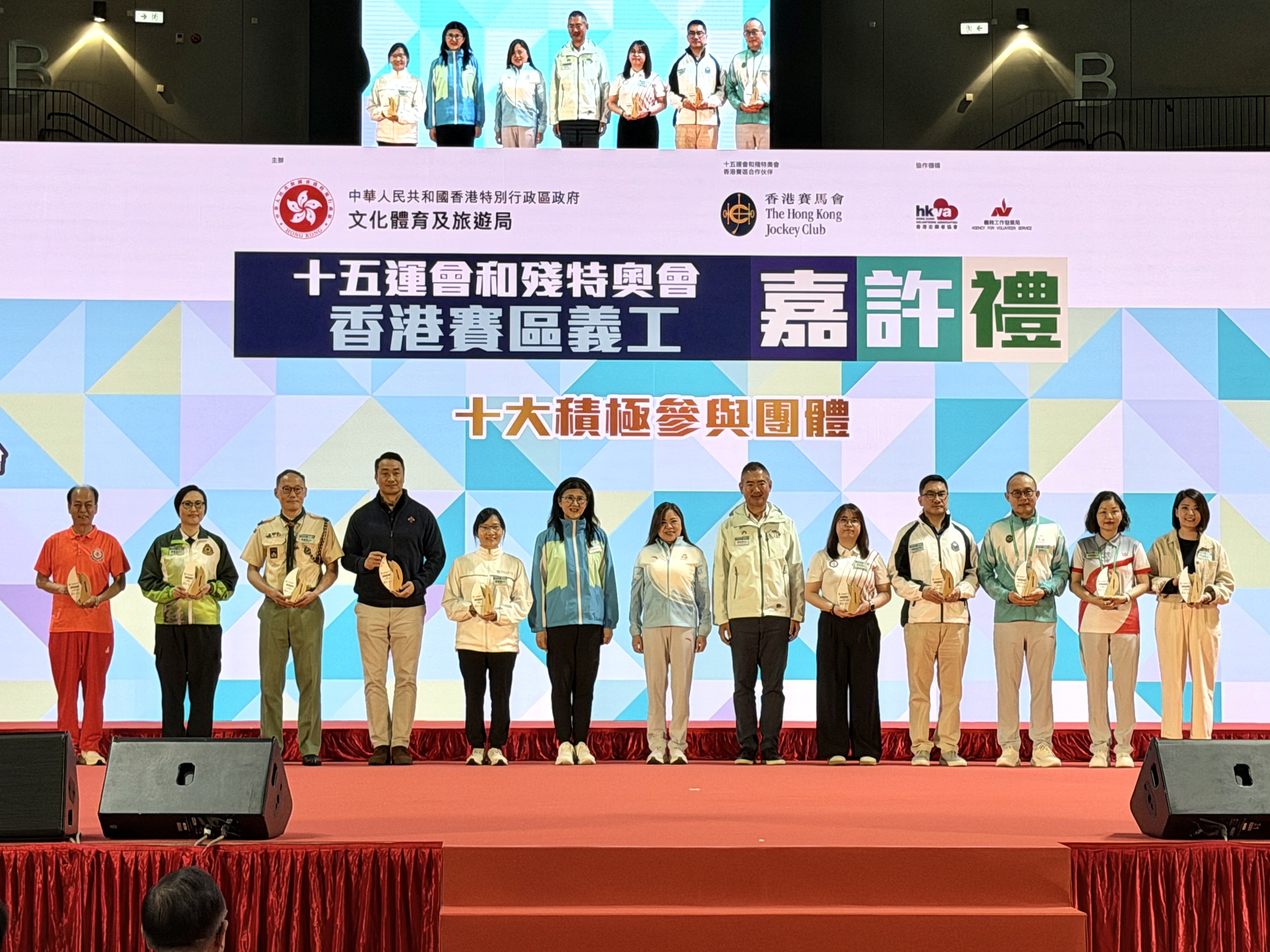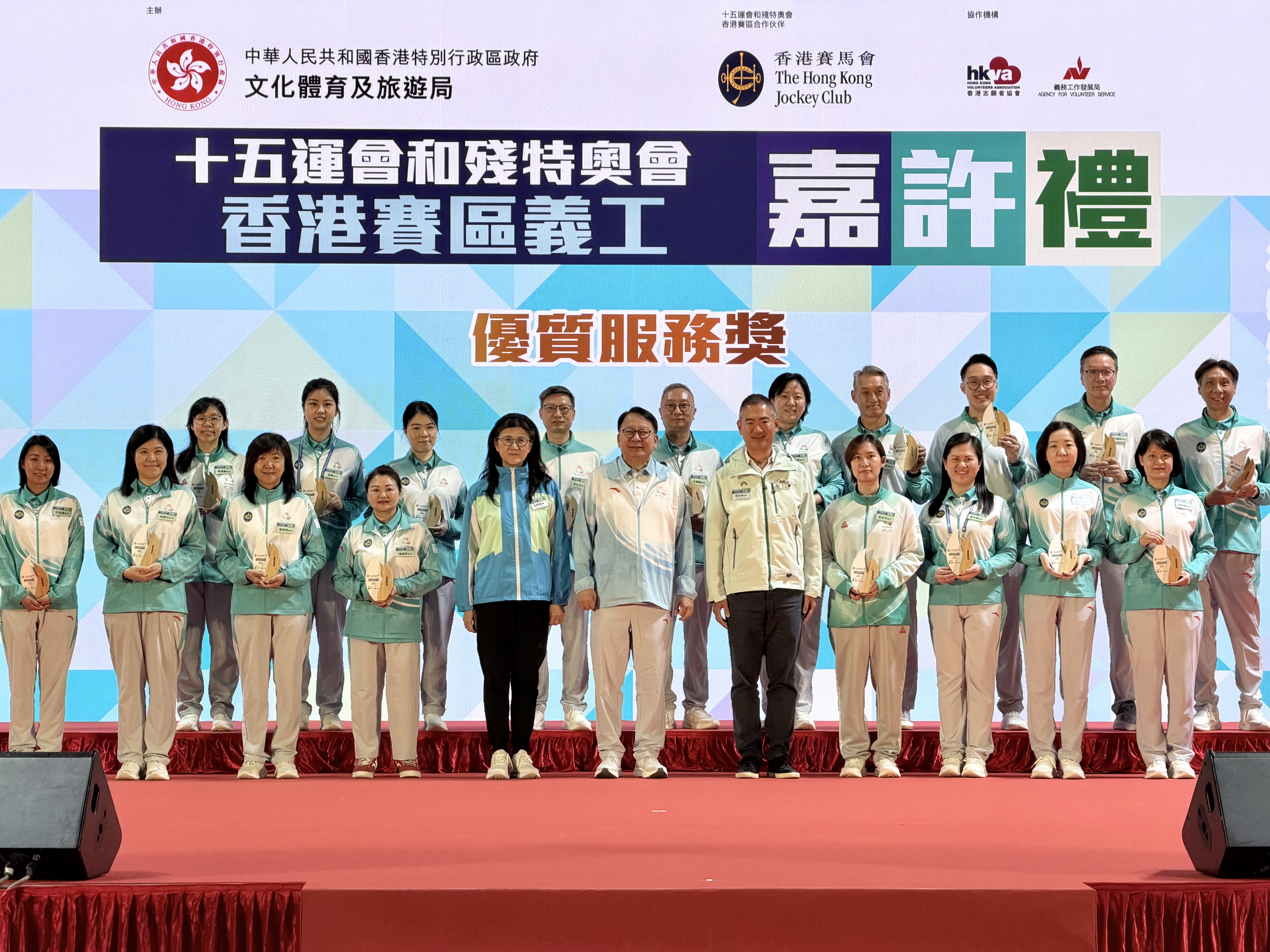 他指出,過去一年多以來,有超過15,000義工積極投身服務,無論是賽事場外的競賽支援、觀眾服務,還是禮品安排、頒獎協助,處處都有他們的身影。今日的嘉許禮,是對全體義工無私奉獻的一個肯定,他們所展現的義工精神是香港社會寶貴的財富,希望大家將這一份服務熱誠延續下去,帶動更多人參與義工工作,共建更美好、更和諧的社會。