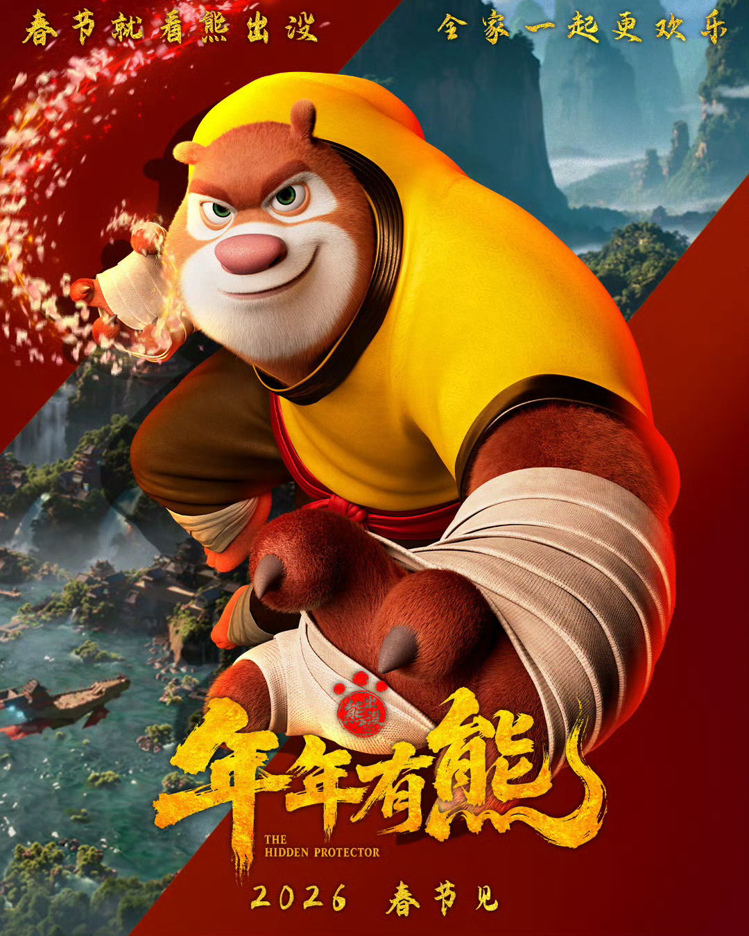 據了解,作為《熊出沒》系列繼「科幻五部曲」後創作的首部中式奇幻創作,《熊出沒·年年有熊》中,熊強三人組的新造型、秘境之城、建築風貌、交通載具,無一不透着濃濃的中式美學與奇幻氣息。當日發布的《熊出沒·年年有熊》定檔預告中,神秘人以強大力量為餌引導熊強三人簽訂契約,三人神力覺醒解鎖屬性之力,延續喜感之外,另有濃郁懸念色彩。
