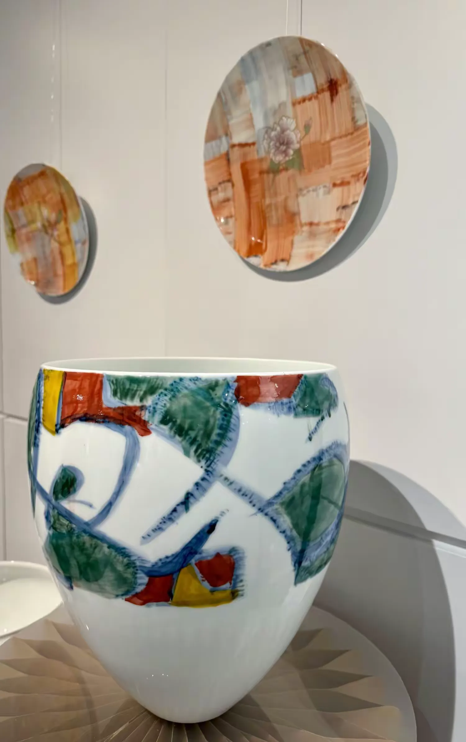 林學明作為集美組設計機構聯合創始人、中國建築學會室內設計分會名譽副理事長,不僅是中國室內設計領域的奠基人,更在陶瓷藝術領域開辟出新天地。畢業於中央工藝美術學院的他,深受新中國第一代設計教育家影響,四十餘年深耕藝術與設計領域,斬獲國內外無數大獎,從廣州長隆酒店到青島地鐵線路設計,其作品遍布各地。在陶瓷創作中,他將醴陵釉下五彩的傳統釉色、抽象紋樣與林學明獨創的書寫性筆法解構重組,融入當代抽象繪畫語言,本次展出的「新五彩」系列,是進一步拓展跨媒介的方法。它使繪畫、陶藝、裝置與空間實踐得以在同一生成邏輯下展開,而不受材料差異的限製,完美詮釋「傳統工藝的當代美學轉換」。