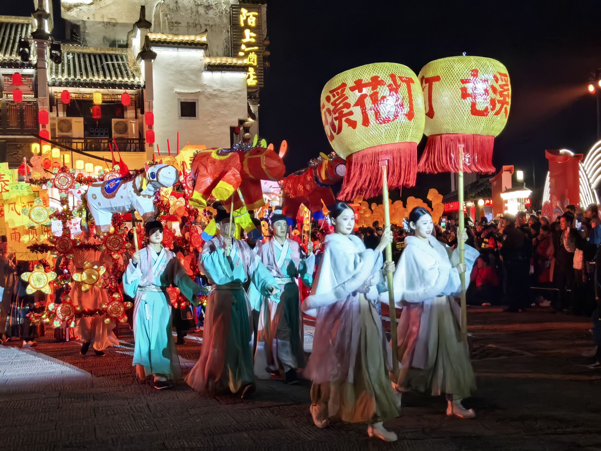 立春當天,在安徽省黃山市屯溪老街,一場以「春啟山河煥新潮 潮街開新篇」為主題的民俗踩街祈福活動吸引數萬遊客和市民紛至沓來。