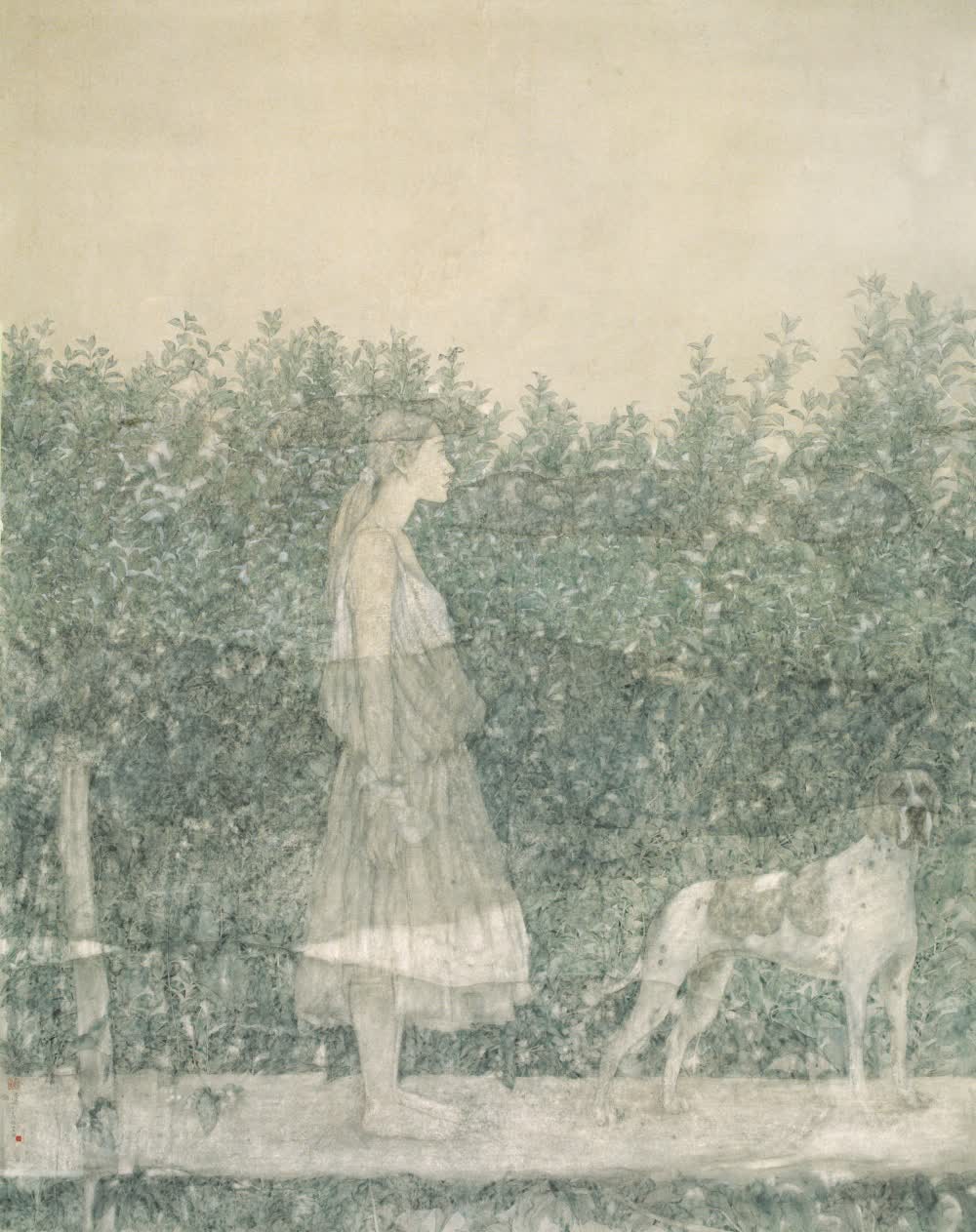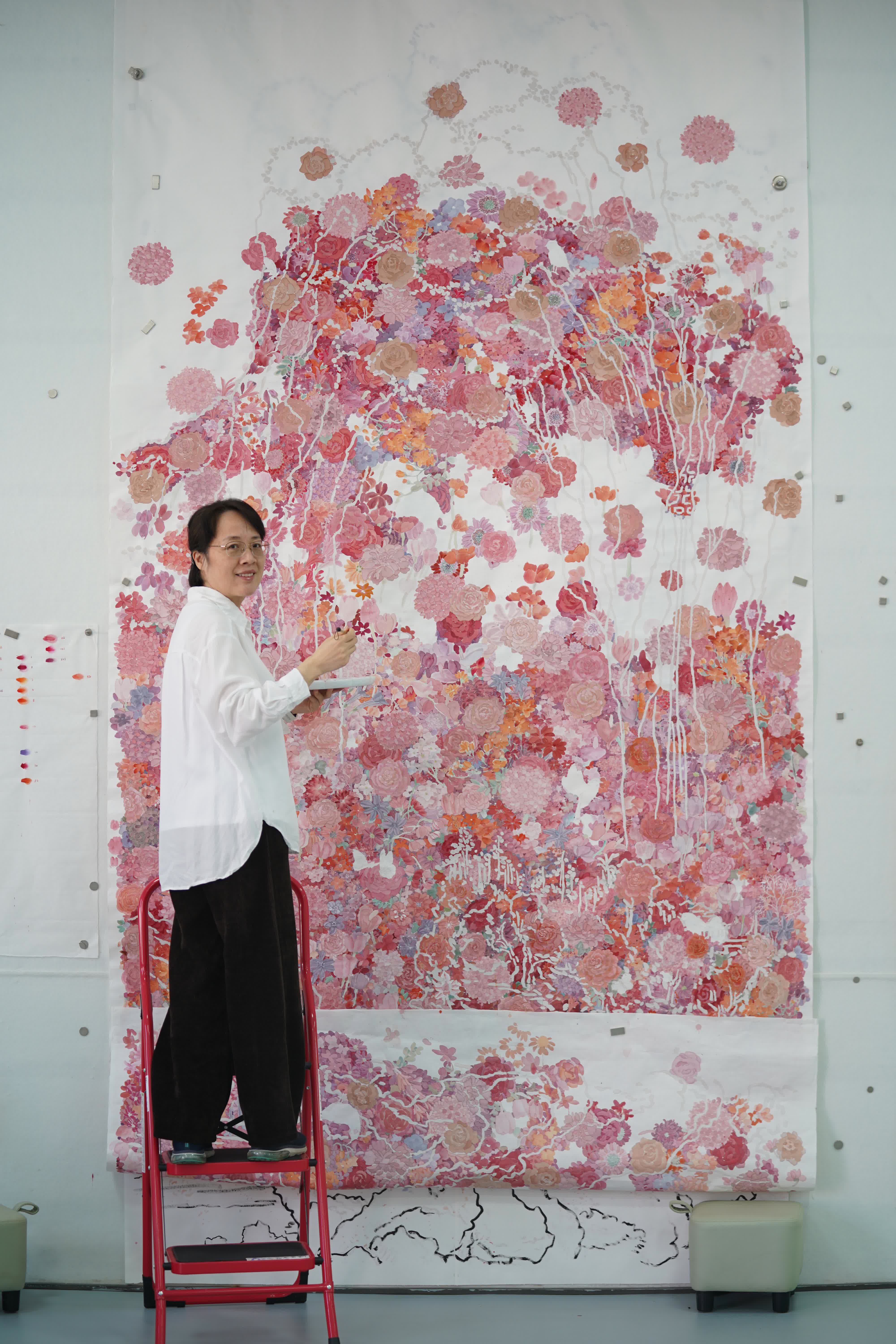 當然,遊走在傳統與現代之間,藝術家始終有清醒的認識:山水、花鳥、人物這些傳統畫科,完全可以融為一體,呈現天人合一,又或者是一種大風景的概念。但在技法層面,中國畫永遠應是中國畫,比如說它應該是平面性的,沒有光影,沒有焦點透視。同時,她也並不排斥「現代化」,如今滲透到生活方方面面的AI,在她看來正是藝術可以大有作為的方面。「傳統的中國筆墨完全可以連通情感的活水、插上想像的翅膀,幻化成時代的表達」。希望未來自己能以藝術探索,激起更廣泛的情感共鳴,催生更豐沛的想像空間,將藝術療愈人心的功能發揮得淋漓盡致。
