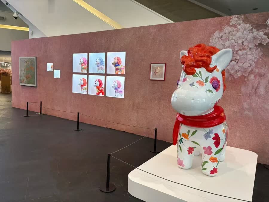 為迎接即將到來的丙午馬年,鮑鶯還帶來賀歲之作《春山錦駒》,一幅繁花披身、萌態可掬的馬圖,還帶來由此拓展的一系列瓷小馬雕塑《福驍迎春》,嘗試了一把跨界。