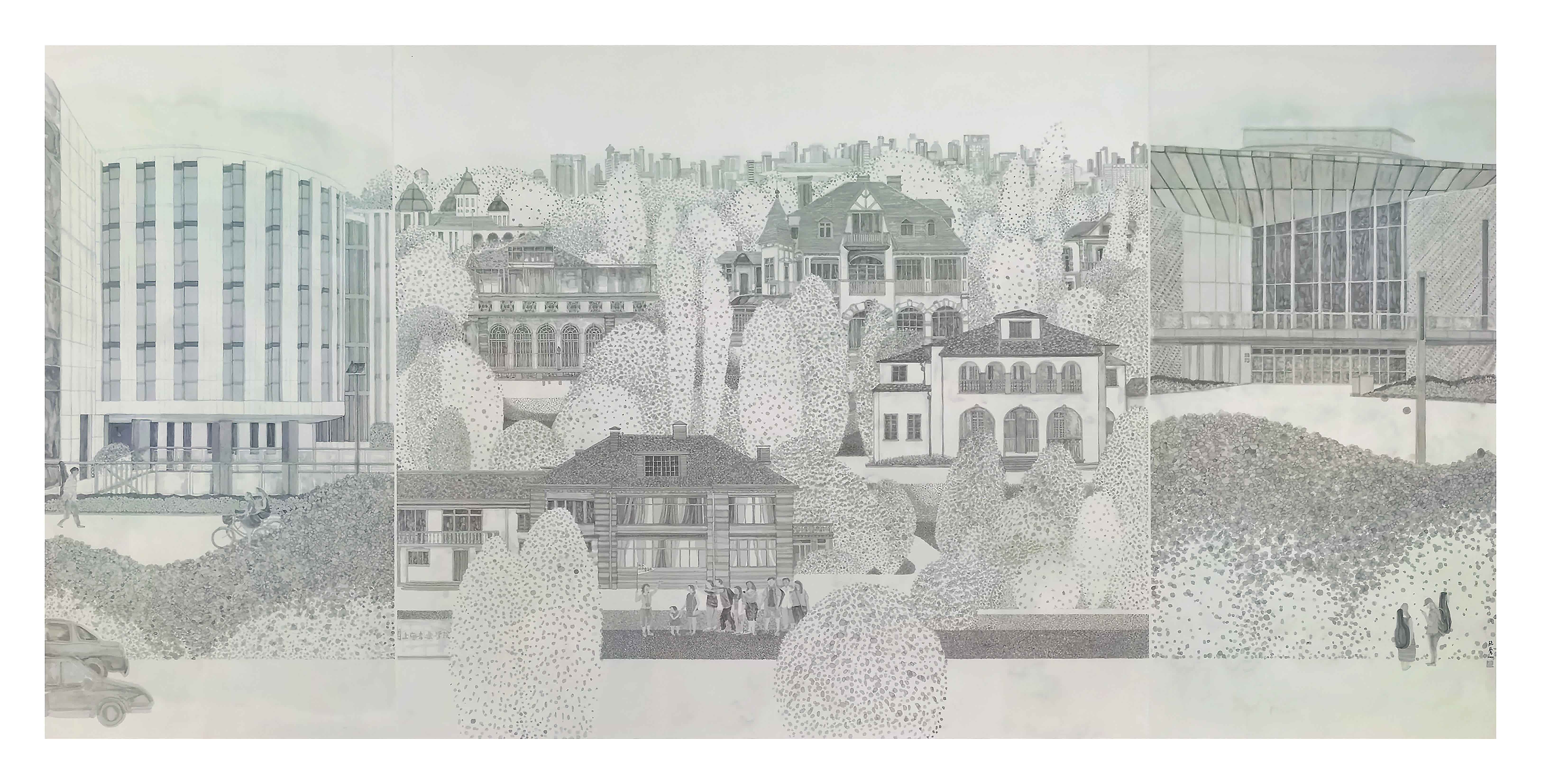 在展覽現場,既有藝術家早期的成名作《故鄉的路》等,又有近年來她行走在故鄉上海的大街小巷,對於城市更新和發展的忠實記錄。如描繪城市新建設的《沒有圍牆的音樂殿堂》。聚焦摩天輪的《樂園》,將遊樂場的喧囂轉化為寧靜的詩意,從側面反映城市發展後普通人休閒生活的《不一般的城市公園》、《春之聲——郊野公園》,還有表現城市高速發展所產生的物與物、人與物、人與人之間疏離感的《隔》系列。一首首令人難忘的視覺藝術的抒情詩,刻下了一道道美麗而又溫馨的印記,共同構成了她對現代都市生活的視覺註解。
