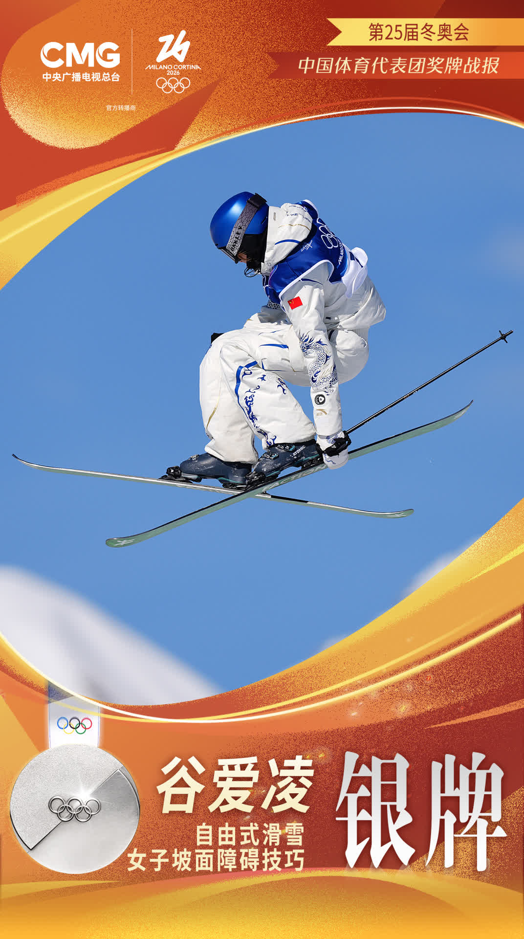 米蘭冬奧會|谷愛凌奪得米蘭冬奧會自由式滑雪女子坡面障礙技巧銀牌