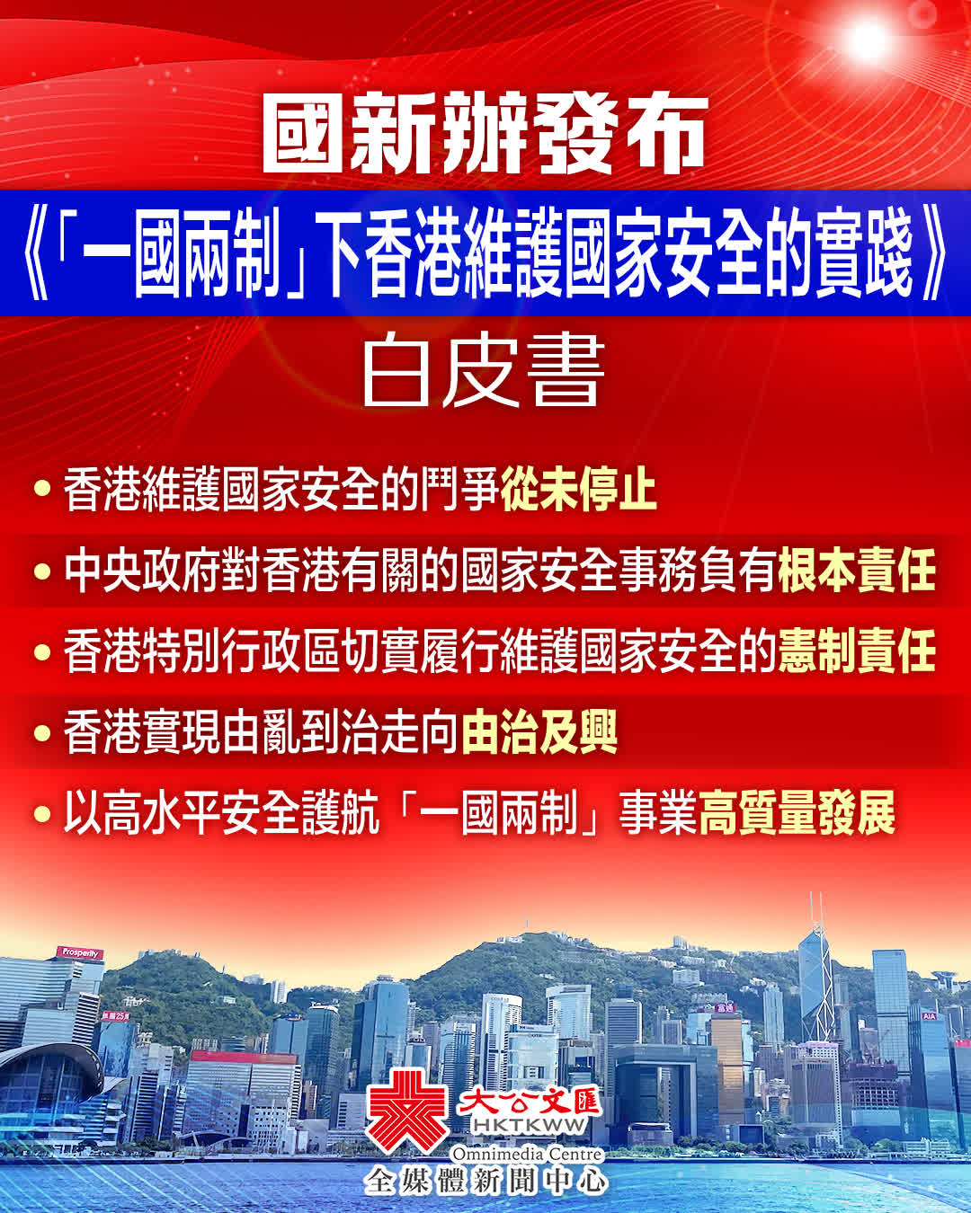 為全面總結香港維護國家安全的實踐歷程和經驗啟示,正本清源、凝聚共識,以高水平安全護航「一國兩制」事業高質量發展,中國政府特發布本白皮書。