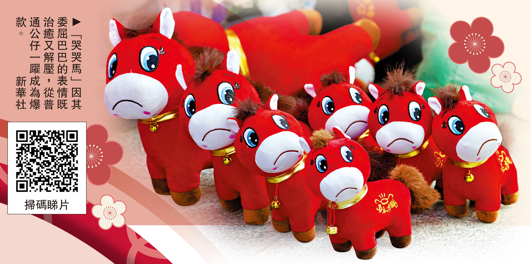 北京大學台灣博士生王裕慶表示,他在網上買了「哭哭馬」,「終於有個『情緒搭子』懂自己的難了!」王裕慶說,馬年的大陸文創很有意思,這次大陸流行的「哭哭馬」,得到了台灣年輕人的青睞。「哭哭馬」委屈又軟萌的模樣,不搞傳統喜慶套路,用喪萌感戳中日常情緒,可愛又解壓,抓住了台灣年輕人的心,妥妥成了兩岸社交平台刷屏頂流。這波馬年文創潮太懂兩岸年輕人了,果然好的文創能跨地域引發共鳴。