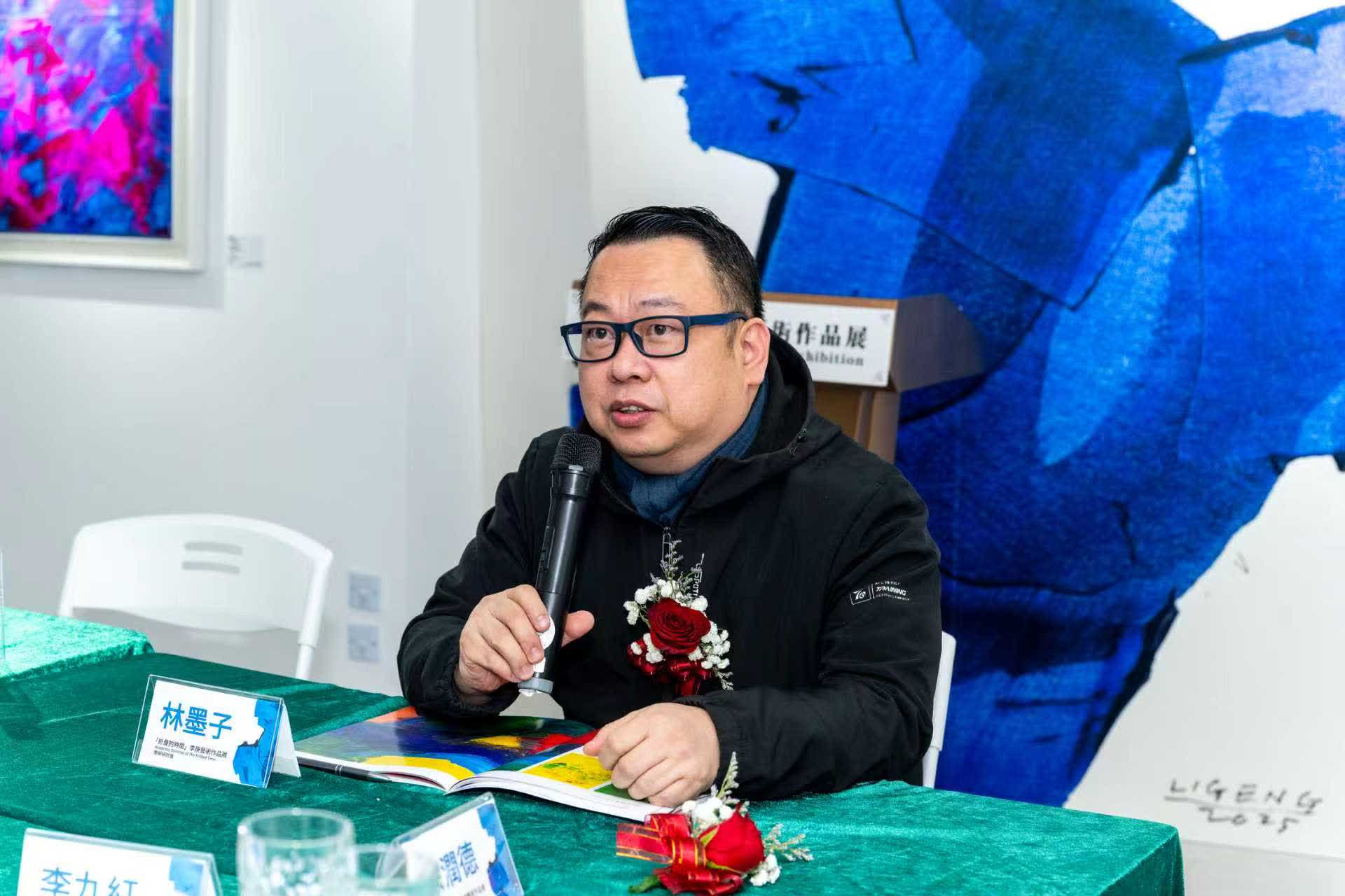 中國書法家協會理事、中國書協香港分會副主席、集古齋拍賣(中國)有限公司董事、副總經理林墨子作為特邀嘉賓致辭。他表示,李庚的作品,兼具技藝、文化底蘊與獨特的思想表達。「折疊的時間」這一主題,實則是對文化傳承與時間價值的深刻叩問——它讓我們在欣賞筆墨光影之餘,讀懂傳統與現代的對話、東方與西方的共鳴,這正是藝術最動人的力量。
