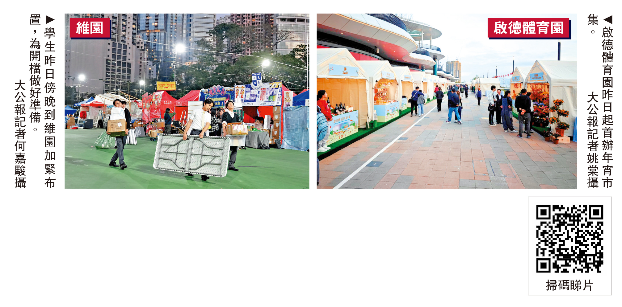 (大公報 記者 林天、姚棠)農曆新年將至,食環署轄下14個年宵市場今日(11日)開幕,全港規模最大的維園年宵共設400個檔位,不少攤位以馬年精品作為主題。行政長官李家超表示,今年春節將迎來內地旅客訪港高峰期,本港將延續旅遊業增長勢頭,全面做好準備及應對工作。