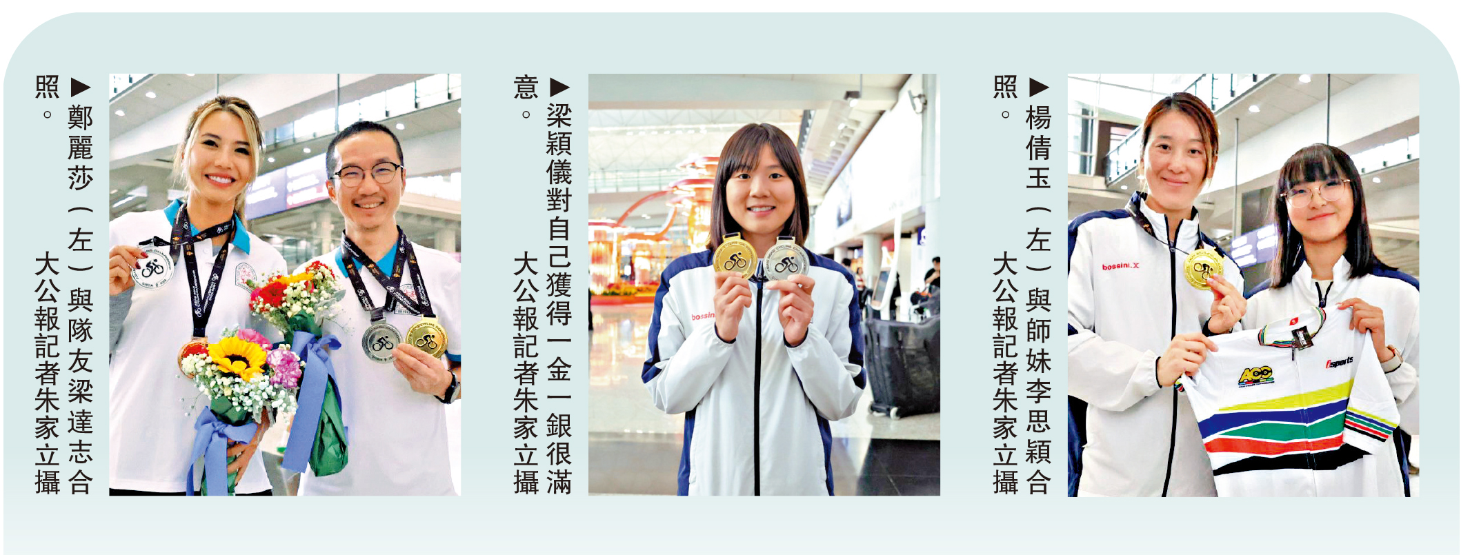 (大公報 記者 朱家立)中國香港單車隊上周六在沙特阿拉伯舉行的2026亞洲公路單車錦標賽中,首次奪得男女子混合隊際計時賽金牌,以及由梁穎儀在女子精英組計時賽取得銀牌,兩枚獎牌皆為港隊史上最佳成績,至於聶偉文率領的元老隊亦在賽事中奪得5金9銀4銅,亦是歷屆之最。大軍10日凱旋,分享奪金喜悅。李思穎坦言自己在個人賽發揮未如理想,但團體賽奪金為港隊備戰亞運注入不少信心。梁穎儀則直言個人賽奪銀給予自己不少信心,希望在名古屋亞運會站上領獎台。