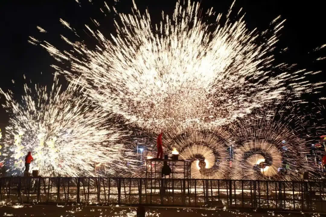 街區內,新春氛圍拉滿,裝飾柱上懸掛的燈籠、糖葫蘆糖果與棉花糖,成為「搶鴻運」活動的熱門打卡點,遊客爭相參與,定格新年好運瞬間。福祿壽喜財NPC穿梭其間,送祝福、贈禮物、互動拍照,讓每個人都能感受到新春的暖意。非遺表演精彩紛呈,打鐵花、火壺、火裙舞表演輪番上演,「敲麻糖」環節人氣爆棚,遊客在香甜麻糖的滋味中感受傳統文化的深厚底蘊。萬人蹦迪環節更是點燃全場熱情,遊客與演員載歌載舞,歡聲笑語傳遍街區每個角落。