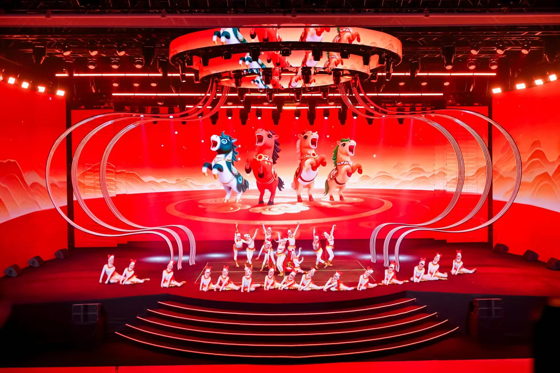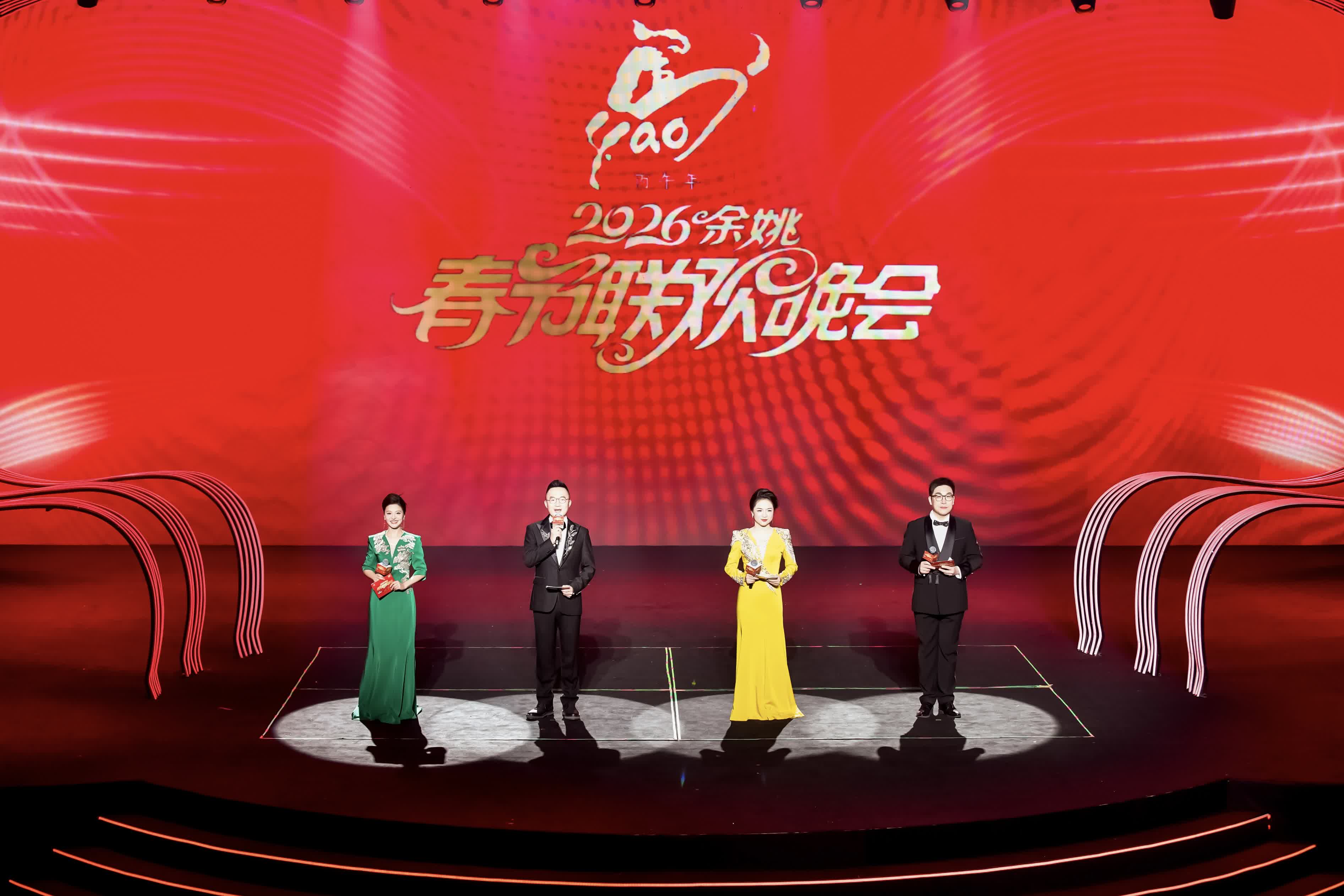 伴隨着音樂情景劇《跫音織錦踏春熙》的動人演繹,晚會正式拉開帷幕。整場晚會亮點紛呈,圍繞「心心相印載歡歌」「智匯四明接虹起」「融融煙火映萬家」三個篇章,節目涵蓋了歌舞、戲曲、雜技、非遺展演等多元類型。從萌趣迎春的《馬上幸福年》、聲聲樂動的《動聽四明》,到創意節目《幸福余姚範兒》、原創主題曲《千年心光》,還有創意非遺《姚·印》展現傳統技藝,藝海流芳《錦繡梨園》傳遞戲曲風華,全方位展現了余姚特色與時代聲音。特別是原創情景劇《跫音織錦踏春熙》展現了余姚撤縣設市40年來的變遷,體現了開放、創新、奮進的城市氣質。此外,音樂光影秀《予你春風》、墨舞和弦《音畫四季》等節目,融入裸眼3D、全息投影技術,為觀眾帶來了前所未有的沉浸式觀演感受。
