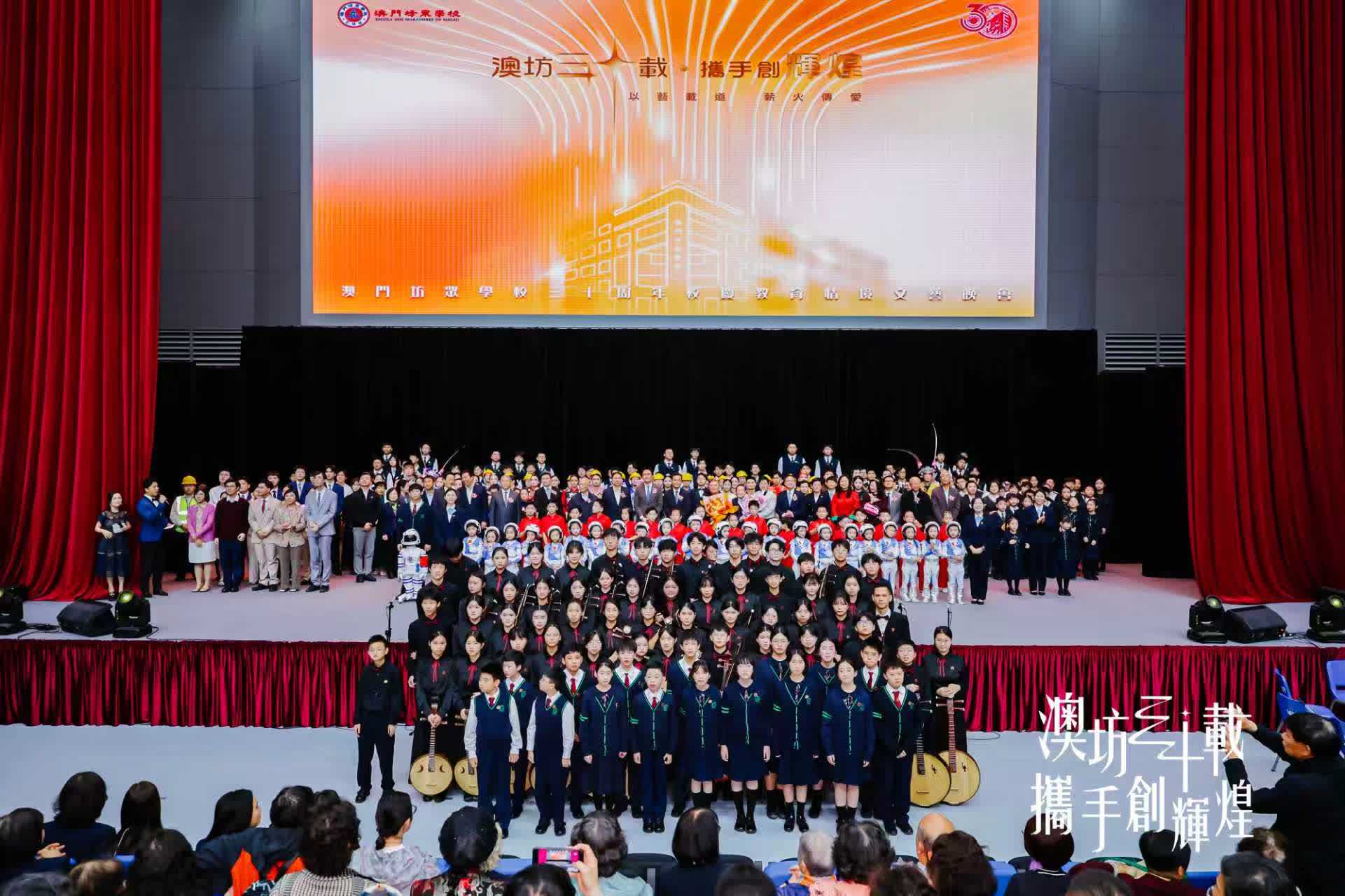「澳坊三十載 攜手創輝煌」澳門坊眾學校三十周年校慶文藝晚會昨(10)日假澳門科技大學綜藝廳舉行。晚會透過四幕原創劇,以學生們的精彩表演重現澳坊三十年的發展故事。