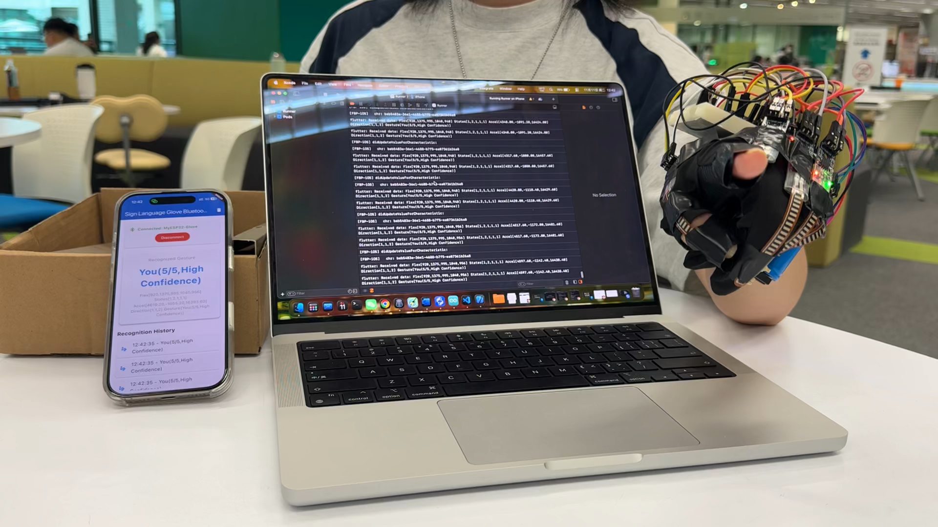 本次獲獎團隊由數學與資訊科技學系三年級學生黃予思、劉曉彬,以及一年級學生鄧逸軒組成,指導老師為張浩然博士。團隊成員深耕人工智能專業知識,針對聽語障人士與大眾之間長期存在的溝通障礙,研發出專為中文手語使用者設計的智慧翻譯手套,為無障礙溝通提供了全新解決方案。