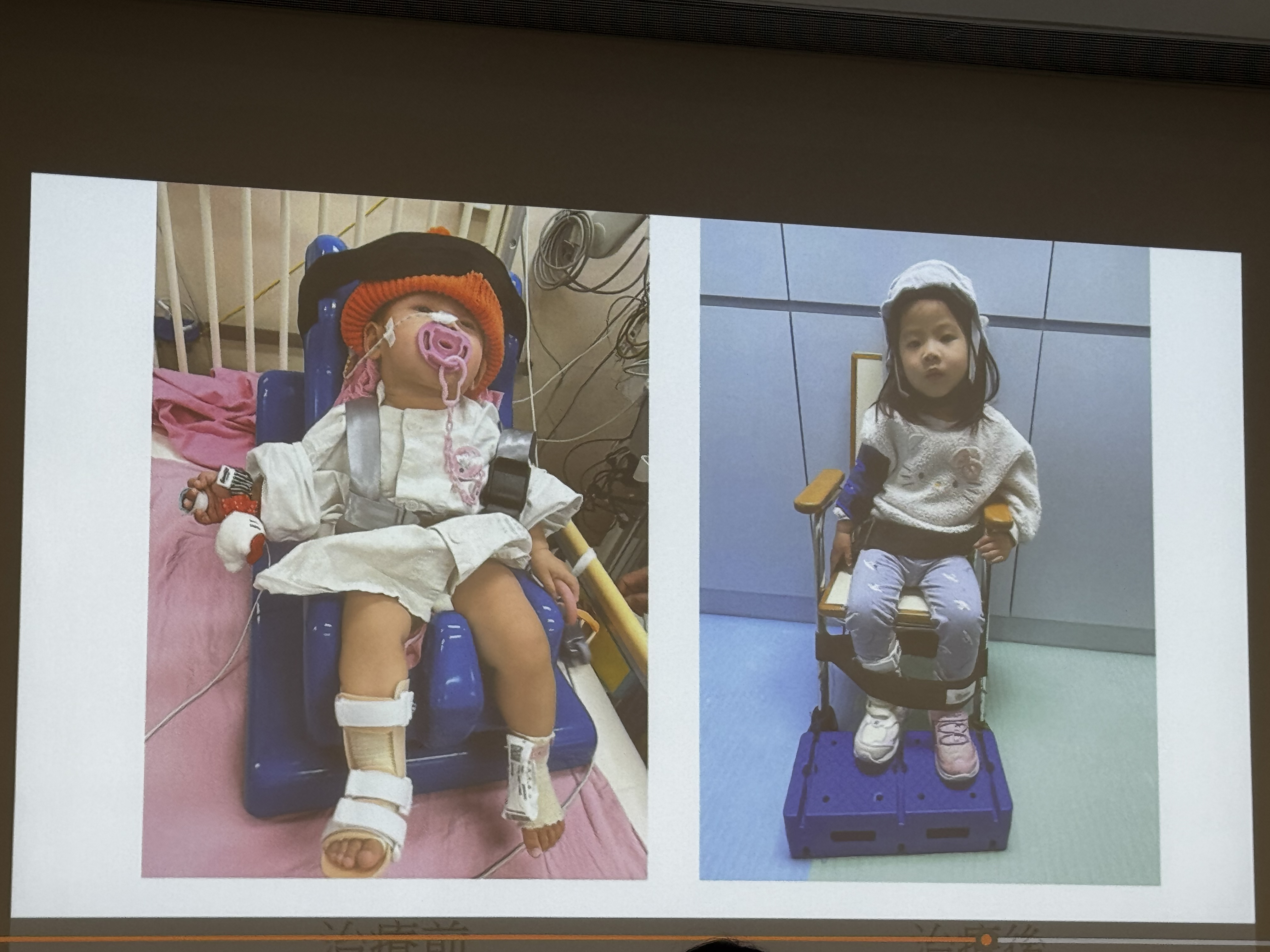 小雪兒媽媽在提問環節進一步分享女兒的康復進展。她憶述,小雪兒曾需以胃管餵食,醫生更一度建議開胃手術直接將食物打入胃部,但她們無法接受只有9個月大的女兒終身以此方式進食。經過與醫生及治療師長達8個月的努力,小雪兒如今已能咀嚼剪碎的固體食物,這是一大突破。語言方面,小雪兒因語言區受損,最初完全無法發音,經過家人每日反覆教導單詞,現已可說出「爸爸」、「媽媽」、「食蘋果」等短句。媽媽期望她能進一步學習「我想食蘋果」等複雜句式。