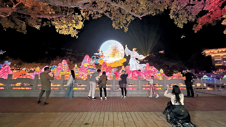 國潮IP,今年也成為了燈會的潮流元素。《小馬菲莉》《超級飛俠》《喜羊羊與灰太狼》《劍網三》《奶龍》《熊出沒》等多個國民級動漫、遊戲IP紛紛亮相。馬年生肖跨界聯動《王者榮耀》,集英雄坐騎、國風賽博於一體的光影矩陣,迅速成為年輕人追捧打卡的潮流「朝聖地」。