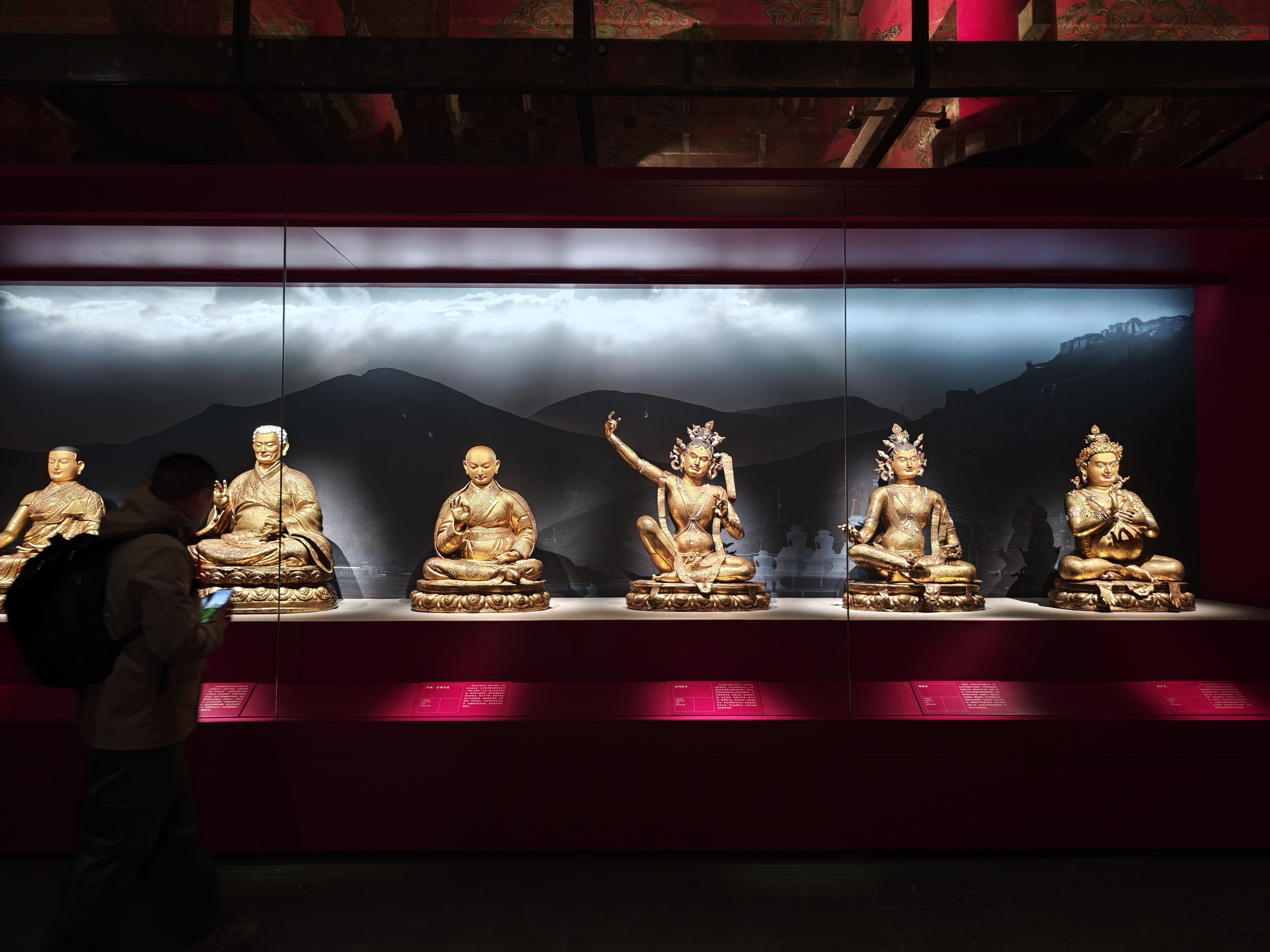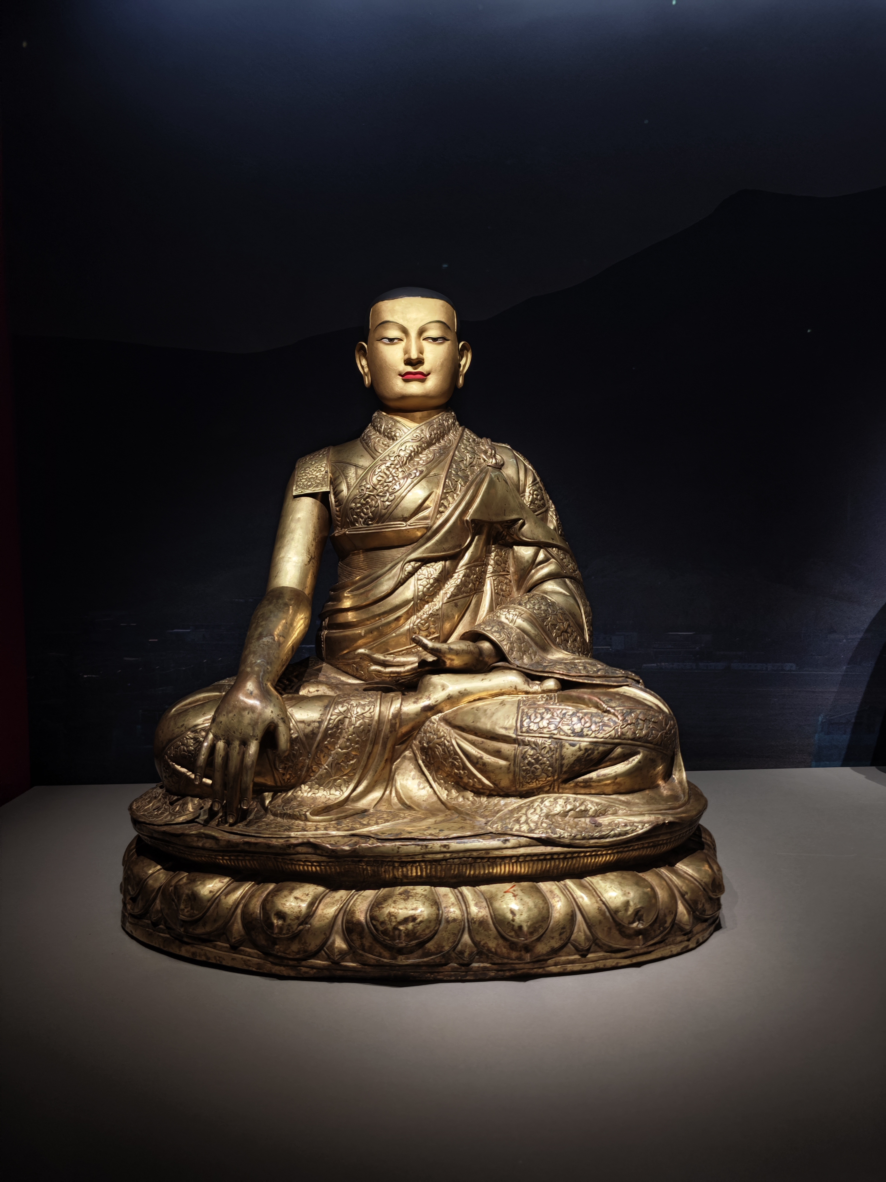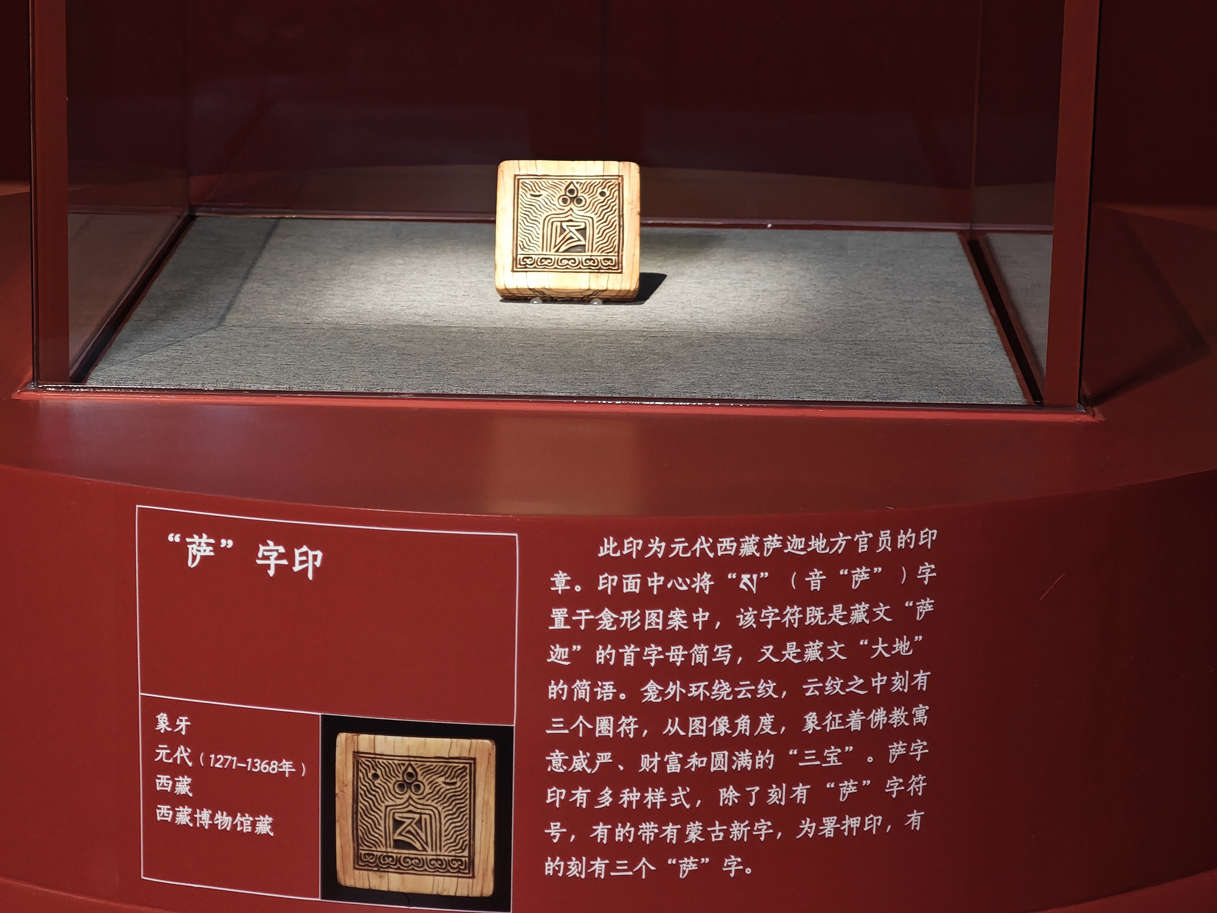 現場展出的《闊端敦請薩迦班智達令旨》《薩迦班智達致蕃人書》文獻是說明「涼州會談」後西藏地方成為元代中央所轄行政區域的重要政治文獻。「大朝國師統領諸國僧尼中興釋教之印」是目前唯一能確認的八思巴用印,他少年時隨叔父赴涼州,後深得忽必烈器重,被封國師、帝師,確立了藏傳佛教在元代宮廷的尊崇地位;他創製八思巴文,推動西藏與中央政權的聯結,並主持營建了薩迦南寺。